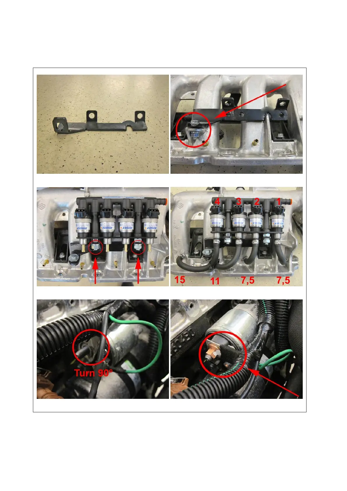 Mount injector rail on bracket. Connect hoses from injector rail to manifold couplings. Lenghts in cm’s.