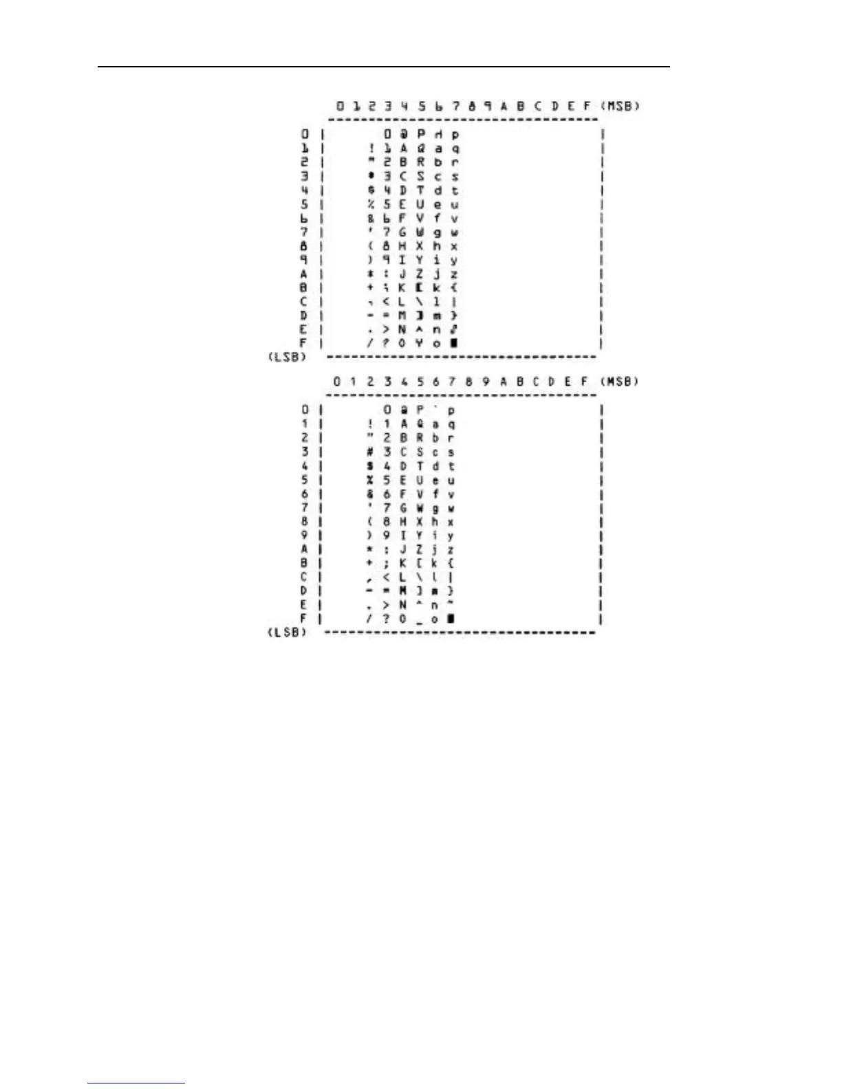 ASCII Character Tables