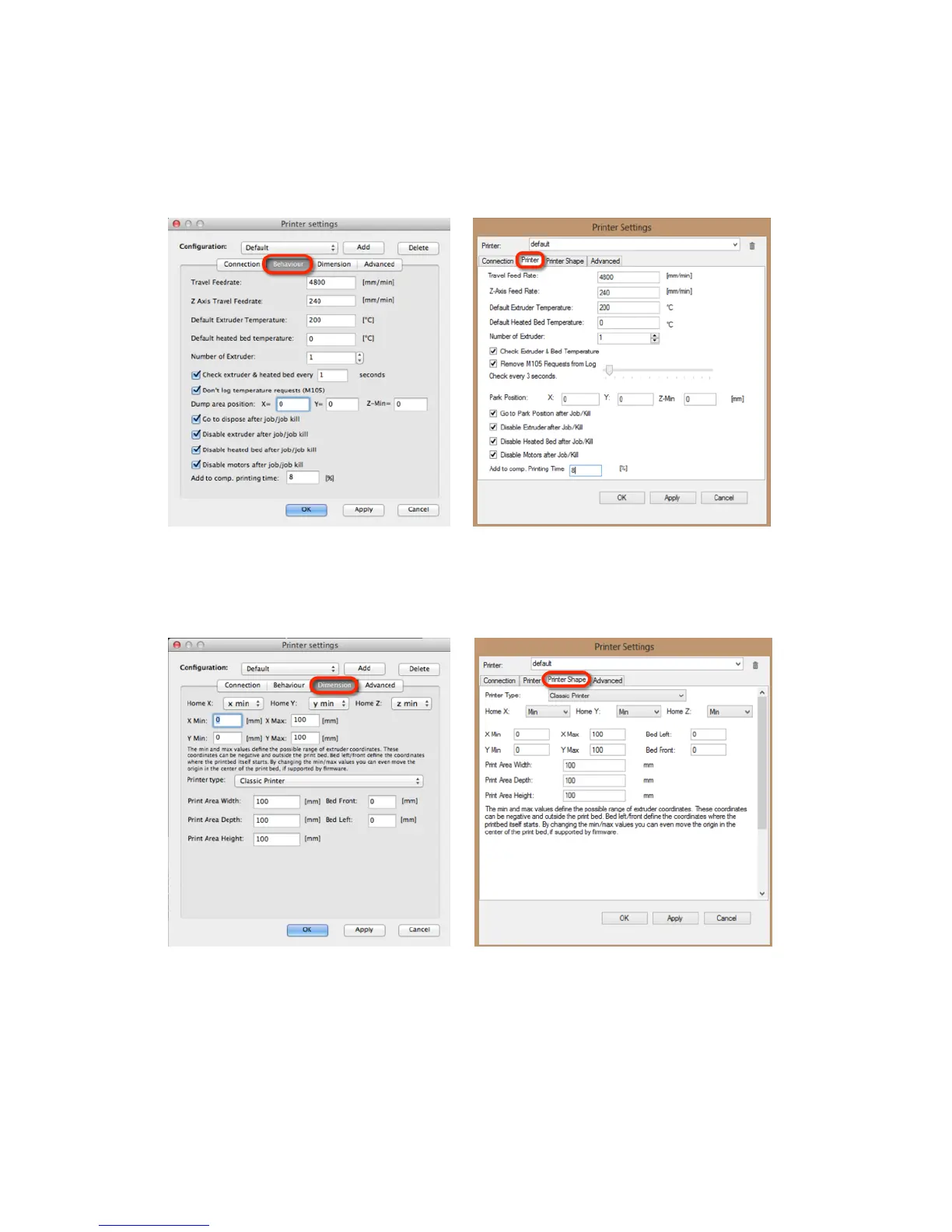 Printrbot Simple - Advanced Printer and Slicer Settings; Configure Extruder Settings; Define Print Area Dimensions