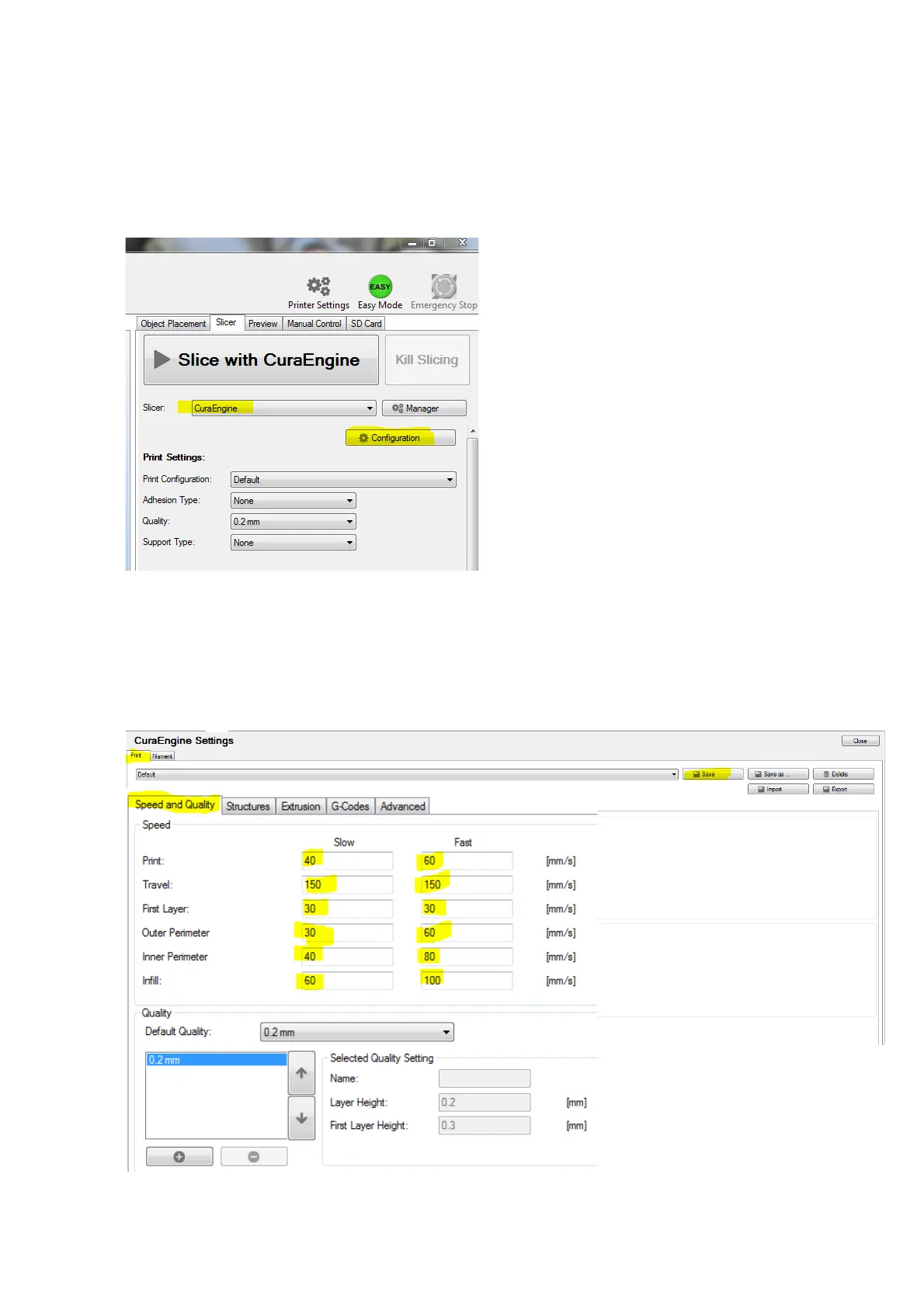Repetier is installed with two slicing engines – CuraEngine and Slic3r. CuraEngine is more suited to