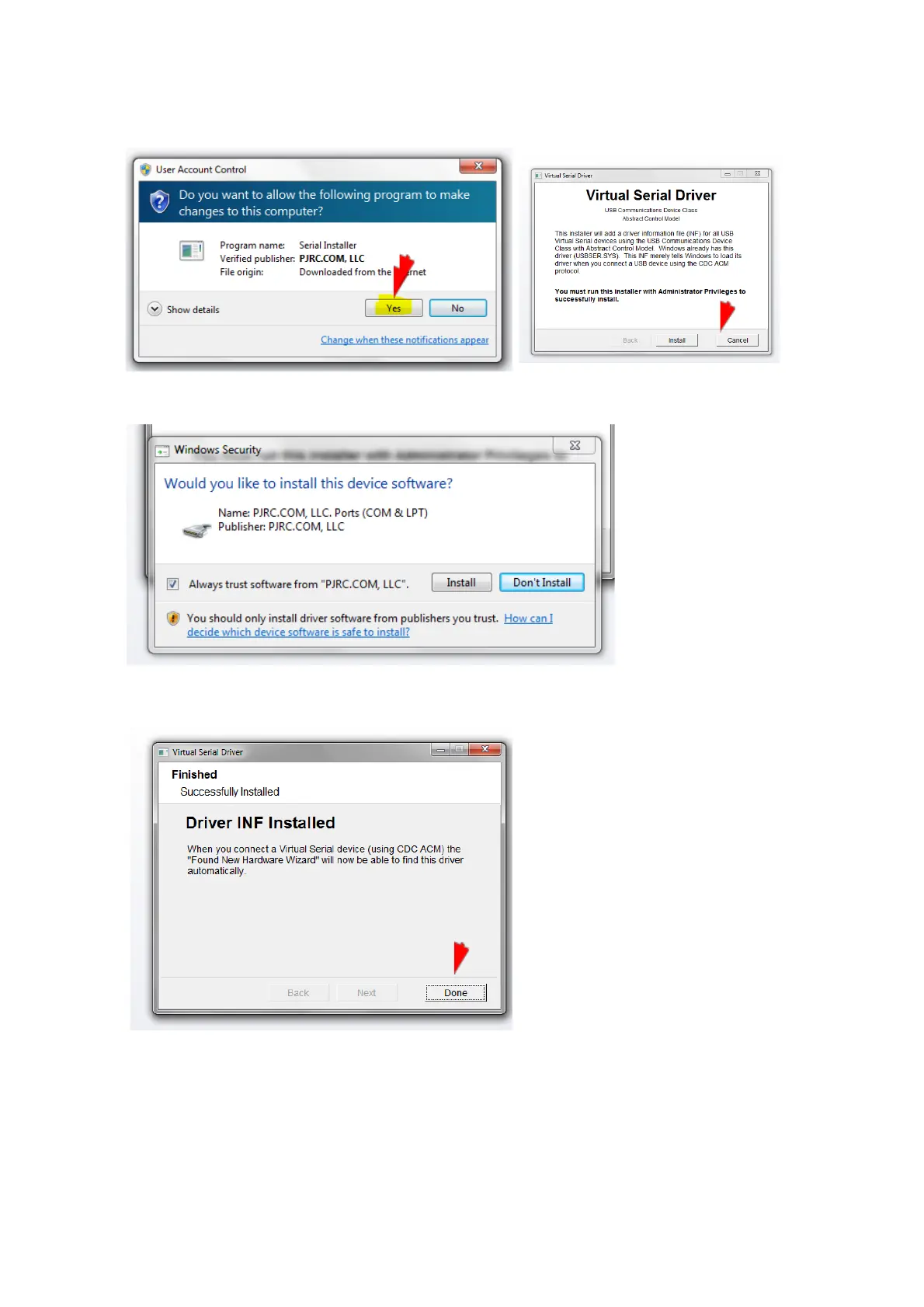 Printrbot Simple - Serial Driver Installation Steps; Confirm Driver Installation Prompts; Finalize Driver Setup