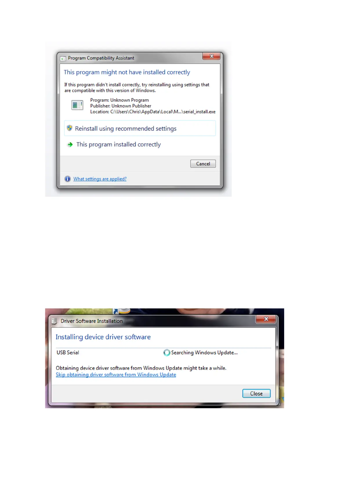 The following dialogue boxes will be displayed – follow any onscreen instructions …