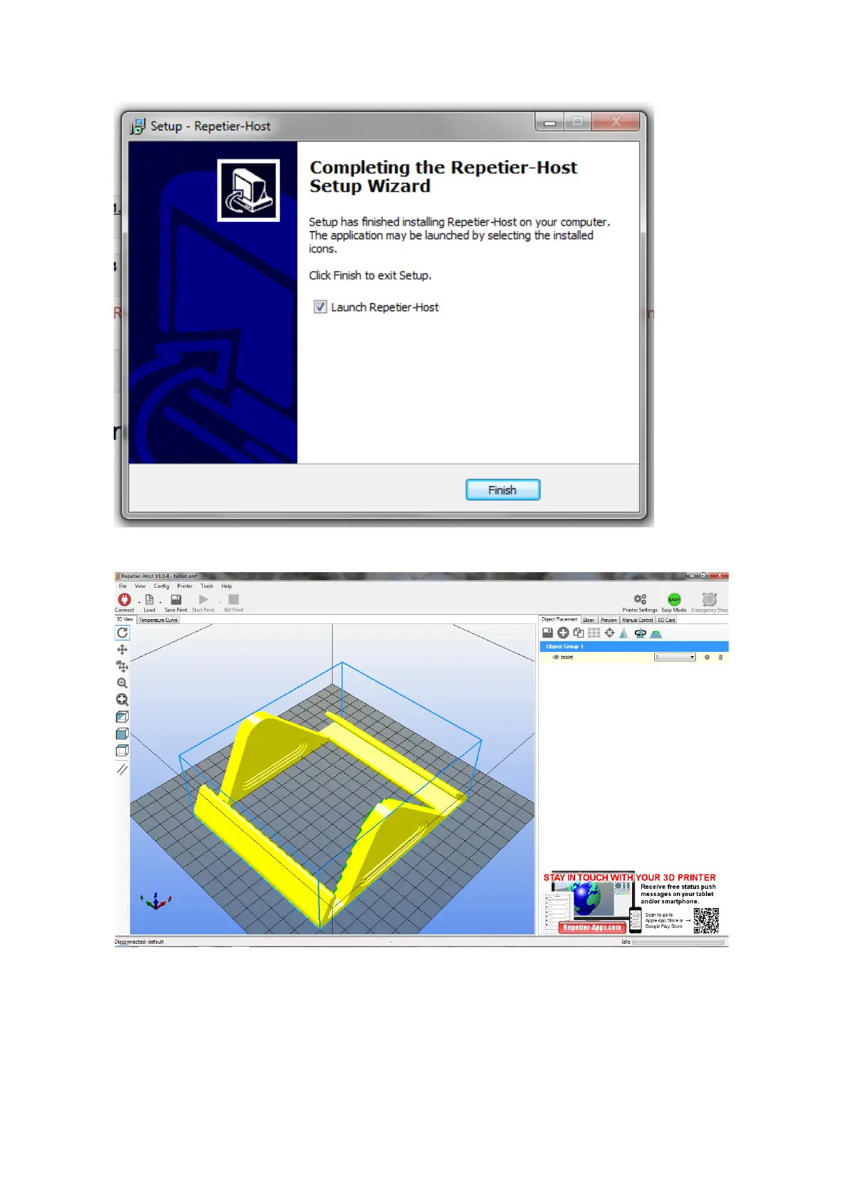 For the first starting of Repetier, you will see that a tablet stand is loaded. Please delete the stand