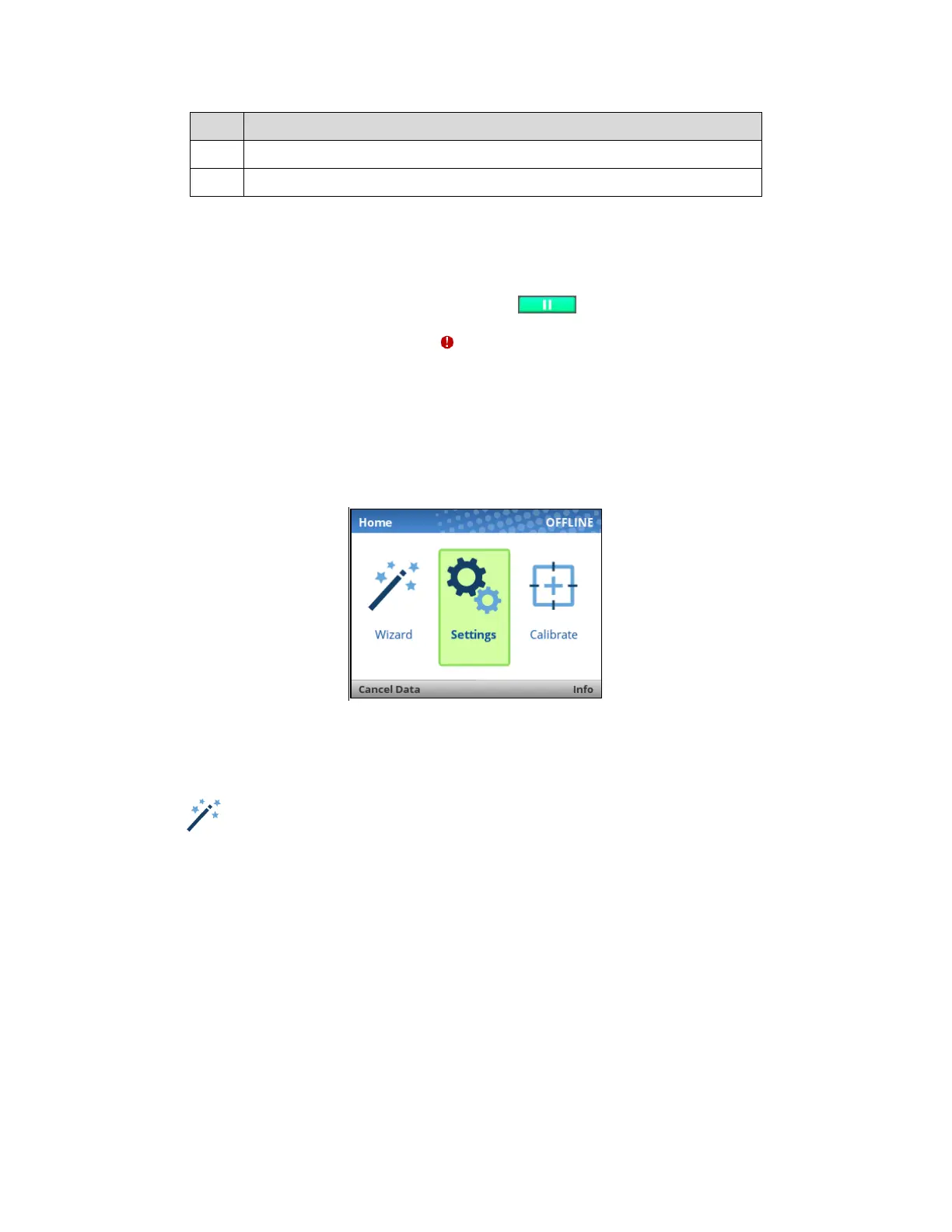 When the printer is taken OFFLINE using the PAUSE Key , the UI will show the Home screen.