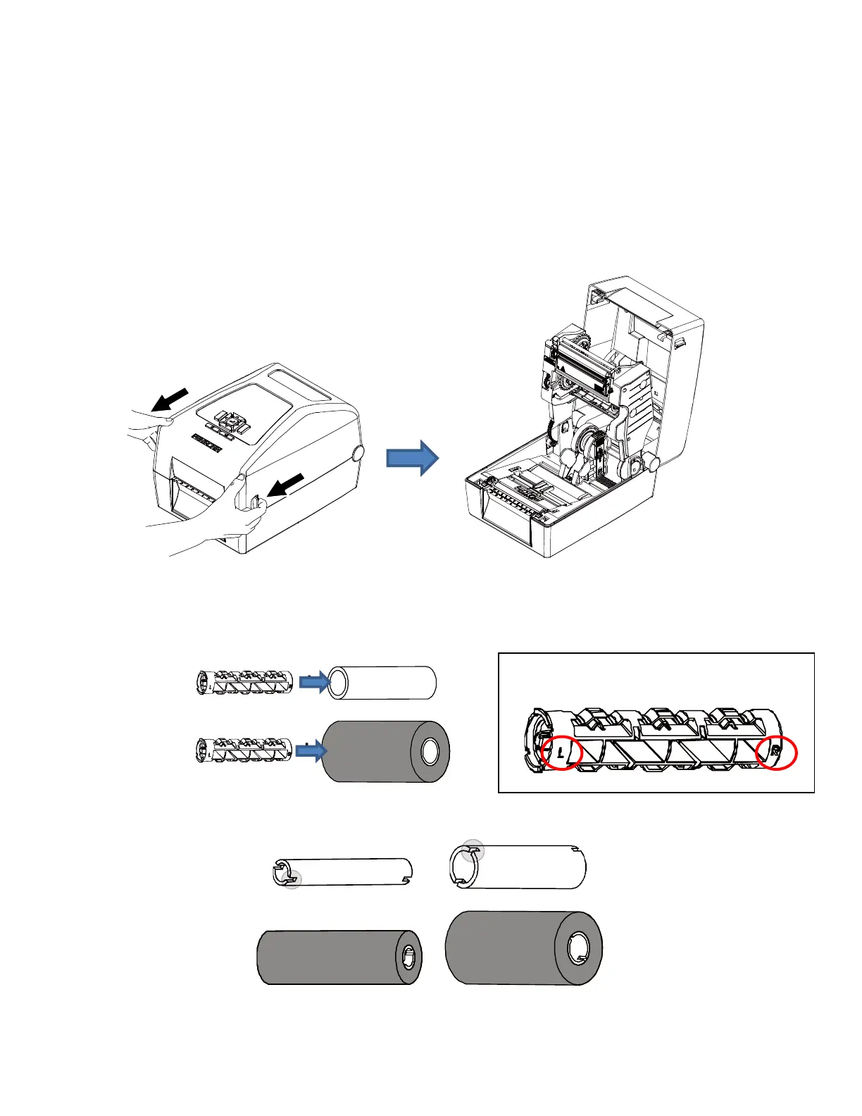 ▪ For 1 inch & 0.5 inch paper core with notches, do not need to install the ribbon spindles.