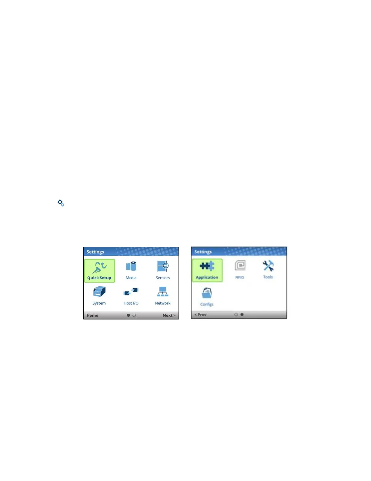 The Settings section is where the complete set of menus and configuration parameters are located.