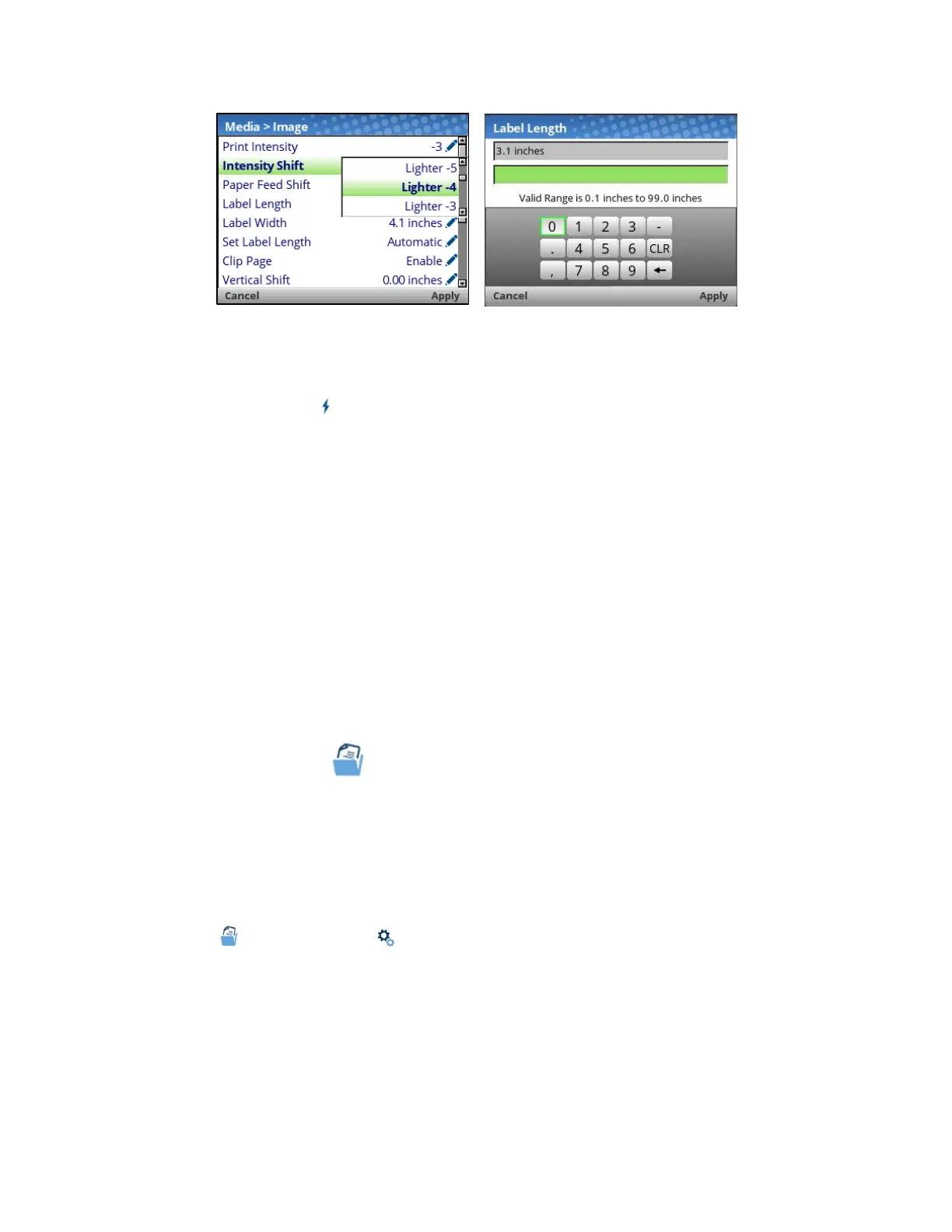 For menus with an action icon , the user can execute the particular action by pressing the
