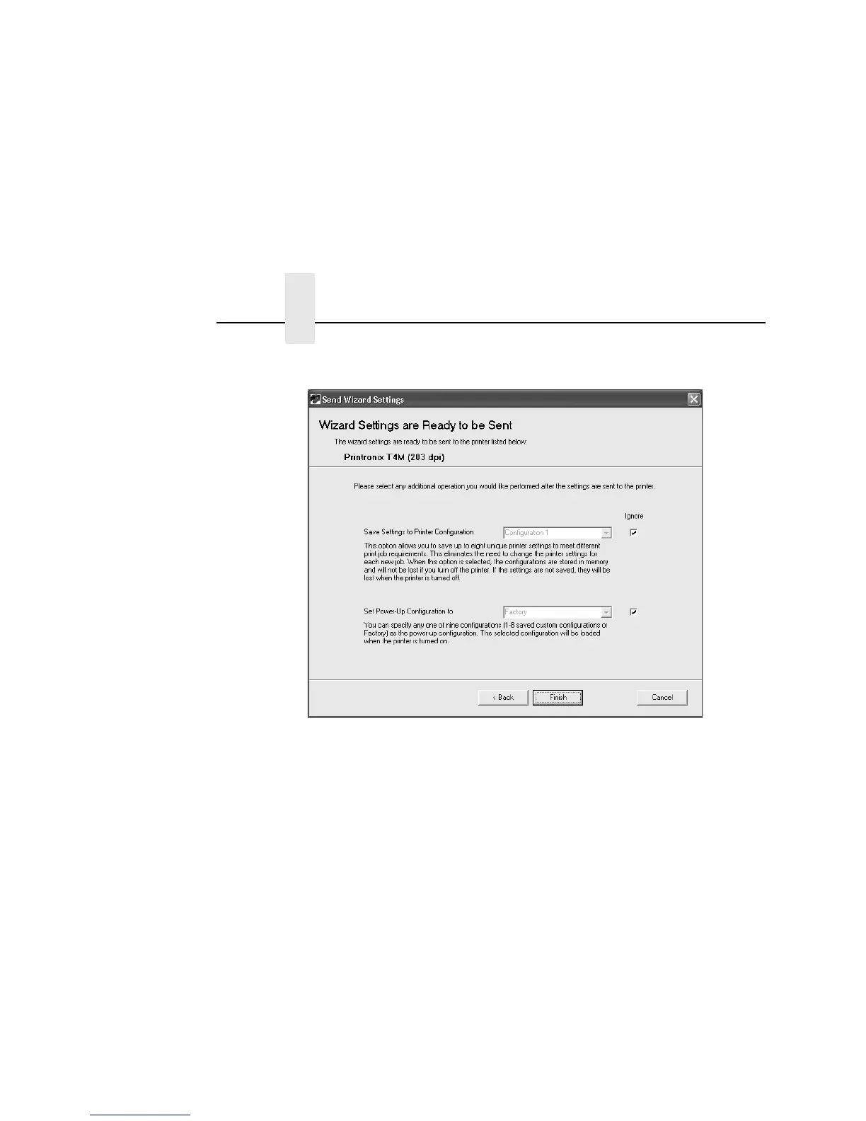 31. Click Finish to send the wizard settings to the printer.