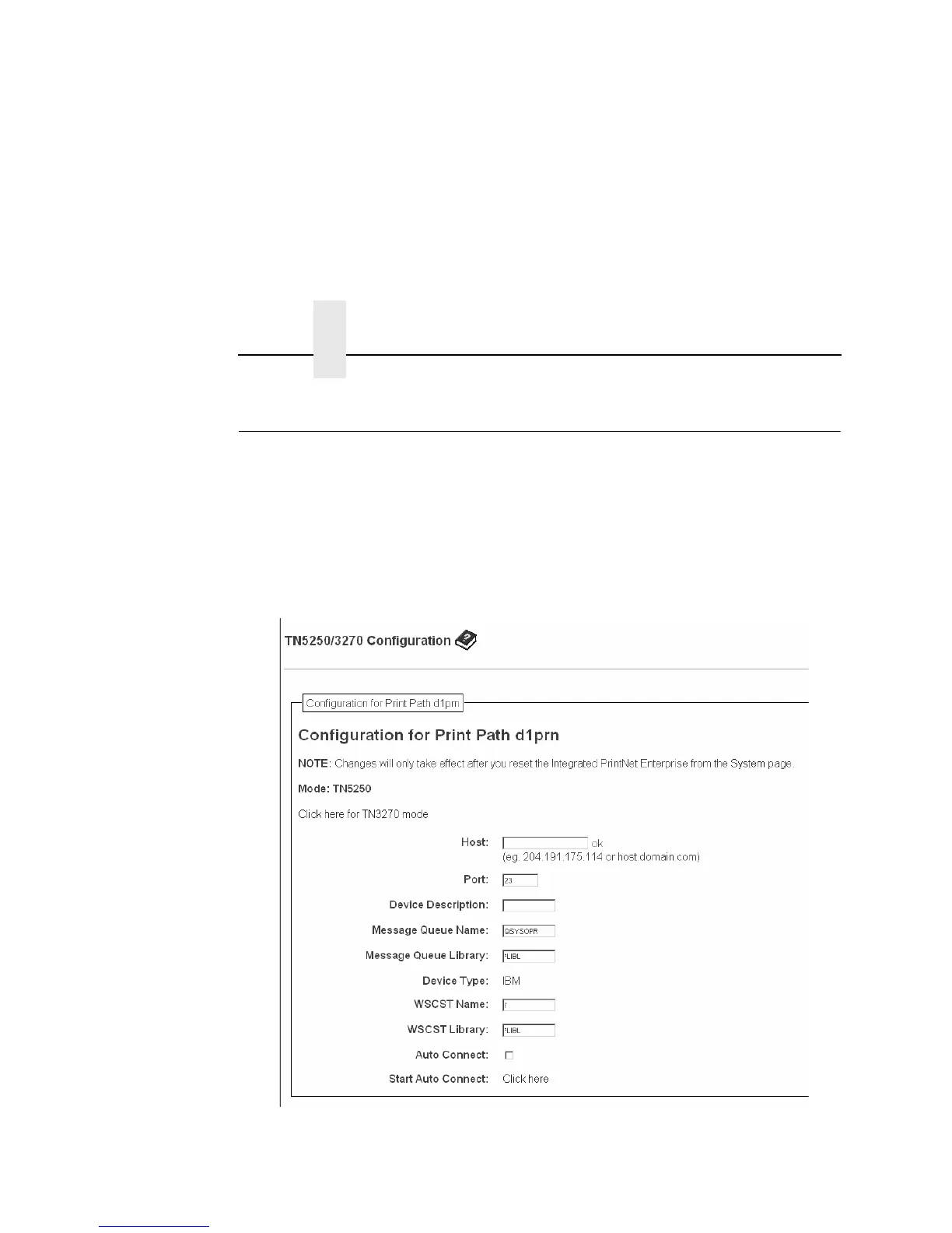 The TN5250/3270 configuration form allows you to specify settings