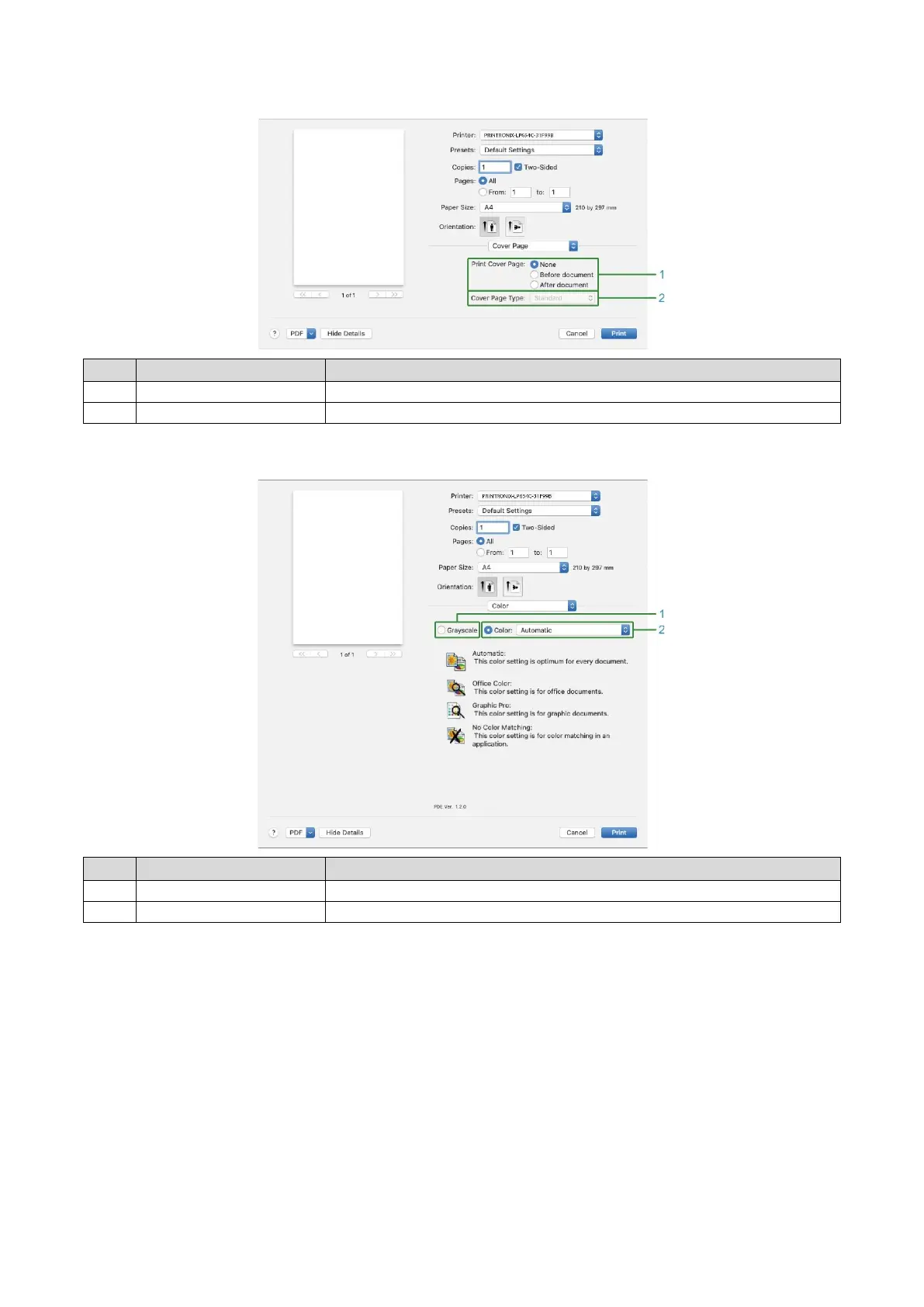 Specifies the cover printing.