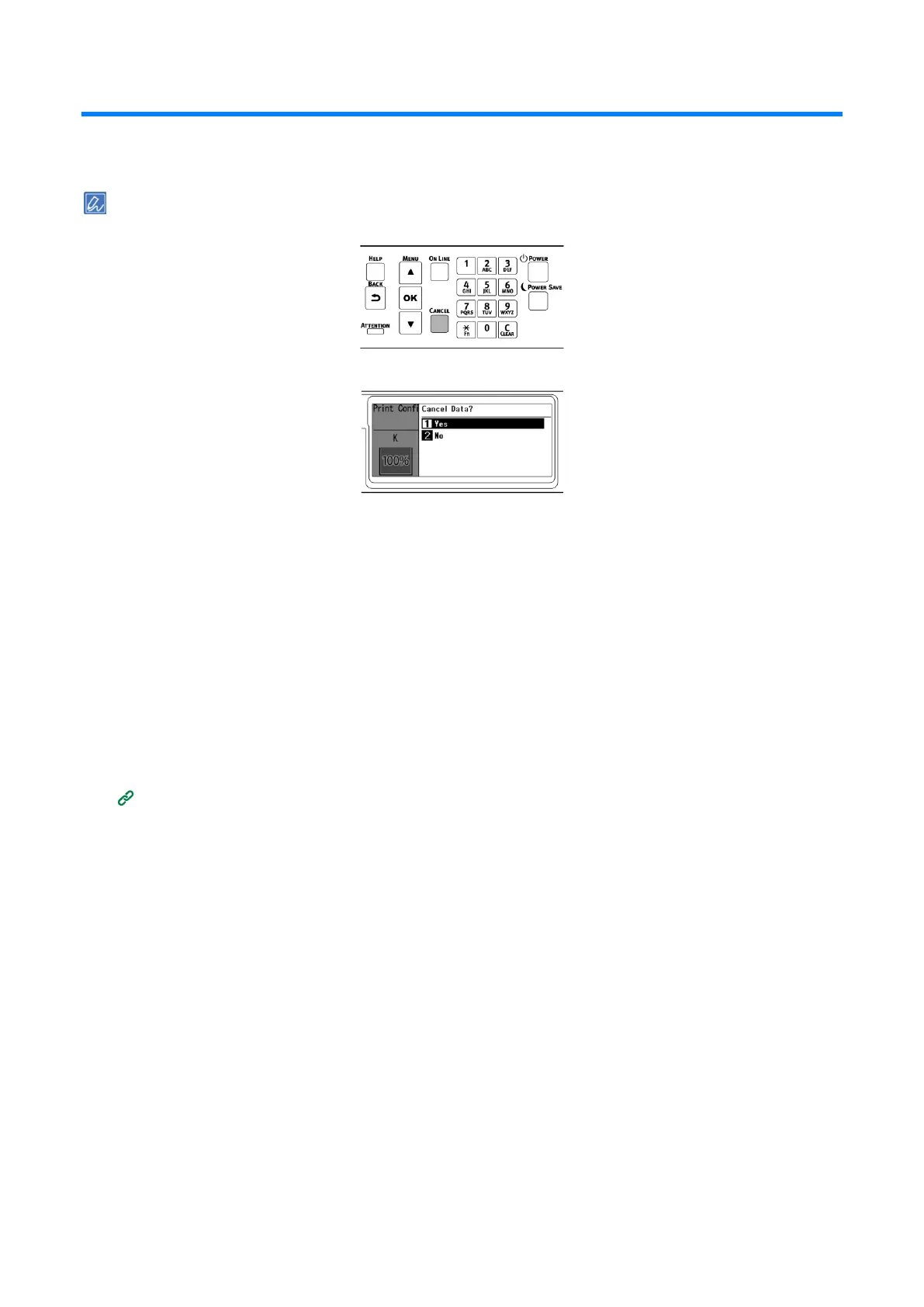 To cancel the data being printed or ready to print, press «CANCEL» for a short time (2 seconds or less) on the