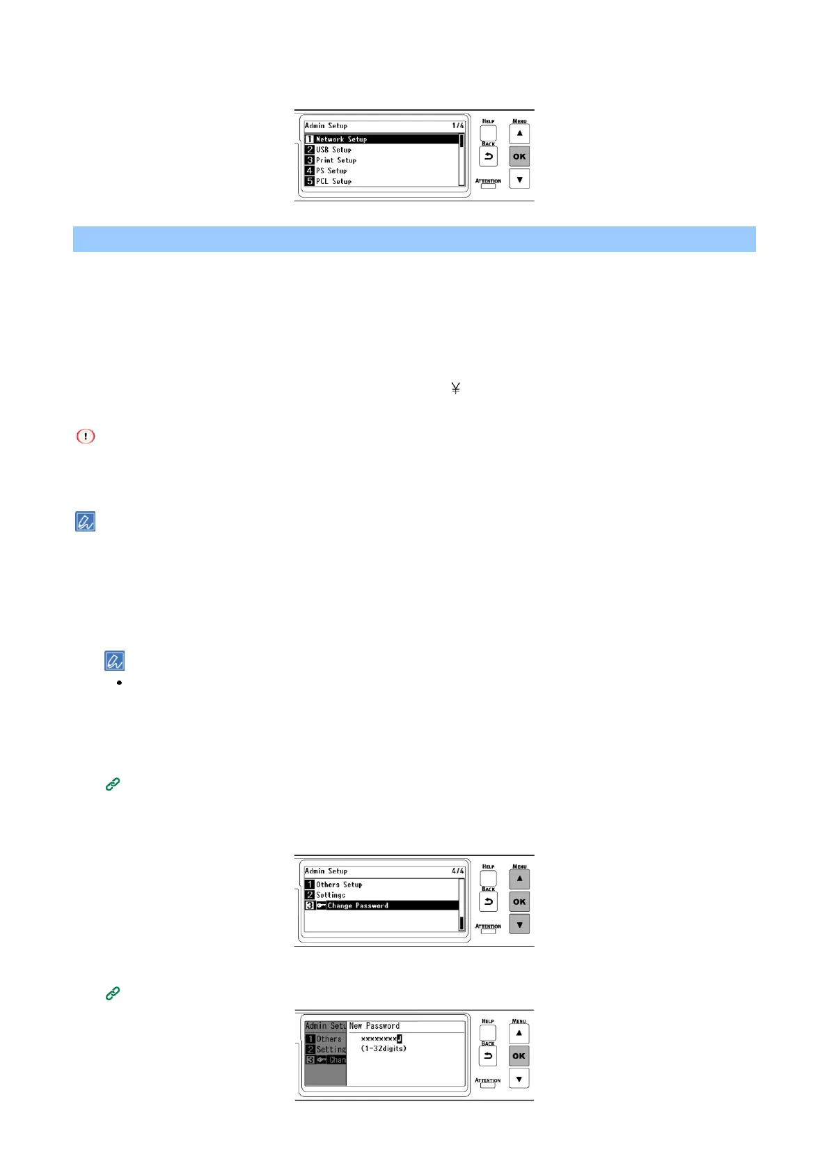 Press «OK» again to complete inputting the admin password and display [Admin Setup].