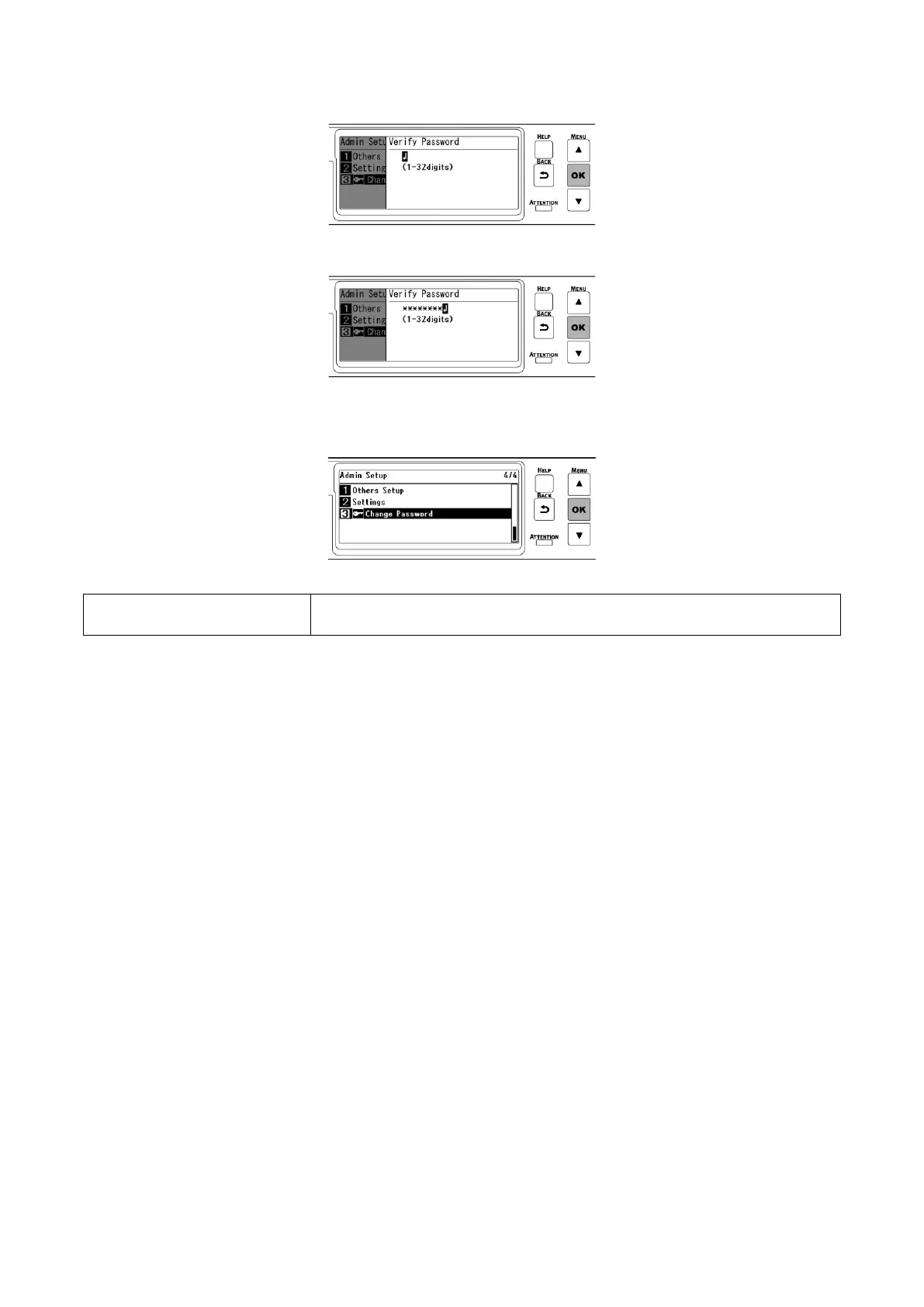 When «OK» is pressed again, the password has been changed and the screen returns to