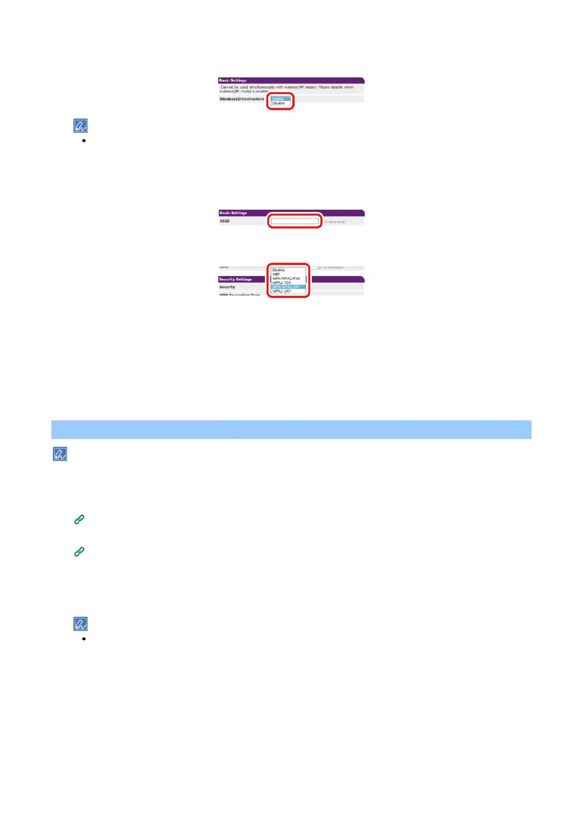 Select [Enable] in [Wireless(Infrastructure)] of [Basic Settings].