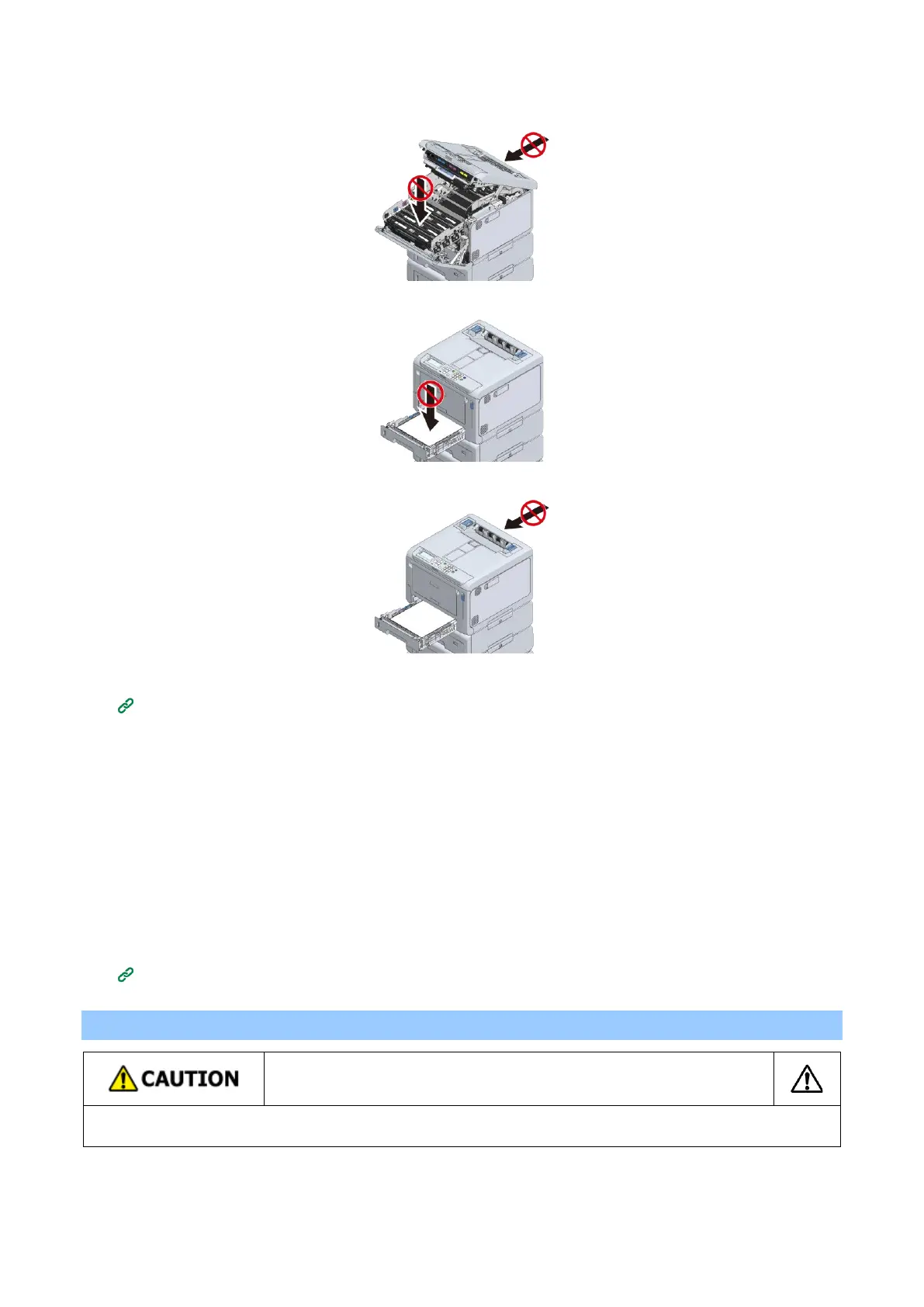 Do not press on the back of this machine or the image drum basket when the output tray is open and the
