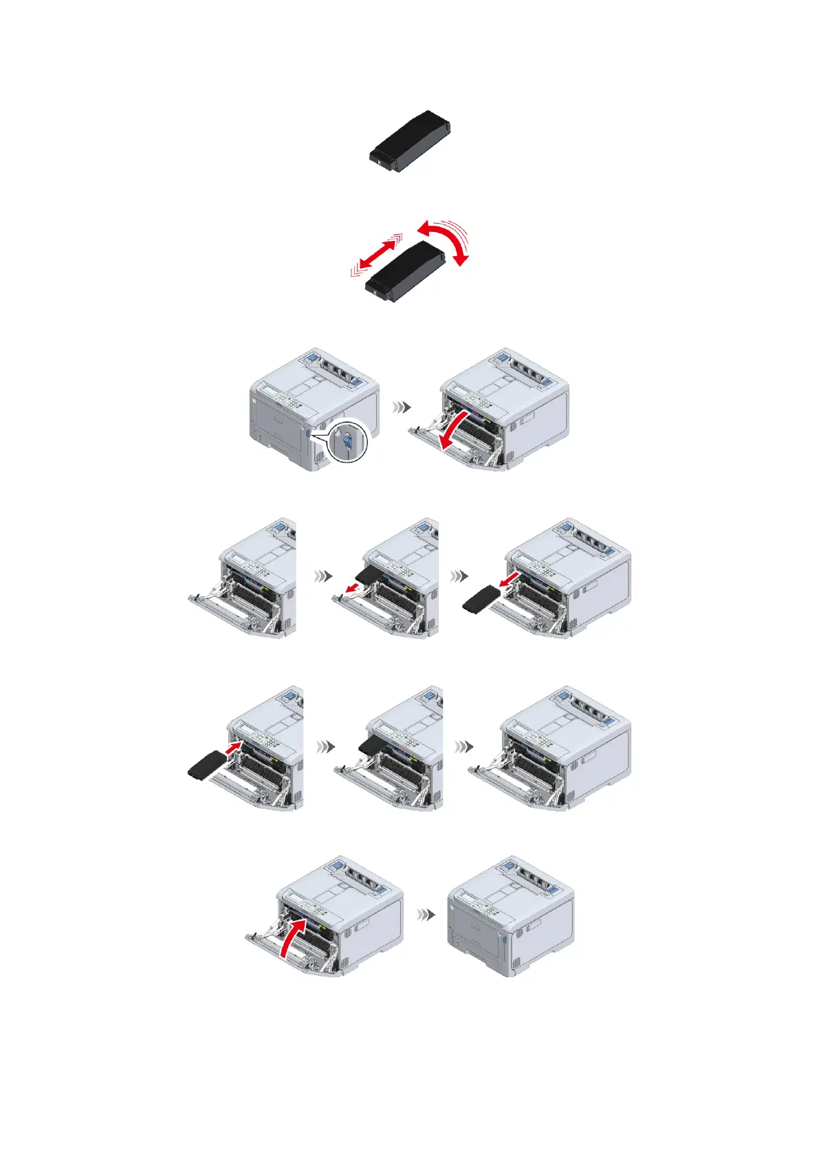Shake the new toner cartridge both horizontally and vertically for several times.