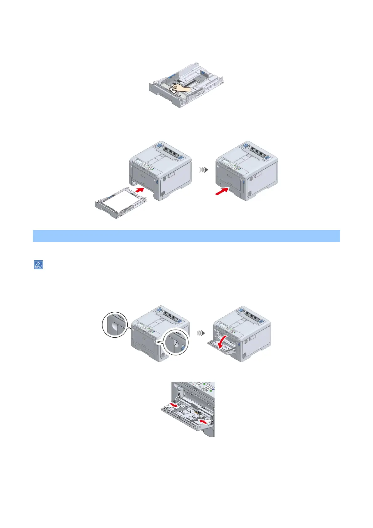 Place your fingers in the front recess and pull to open the MP tray towards you.