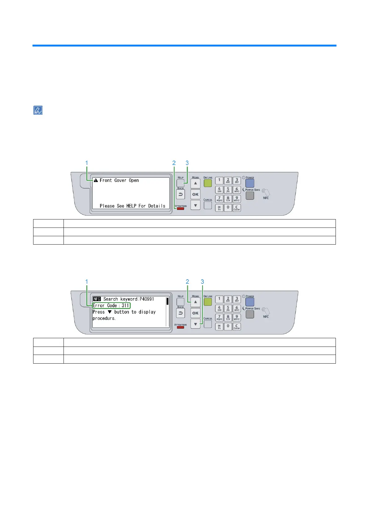 If a problem occurs to this machine, the ATTENTION lamp will light on or flash, and a message will appear on