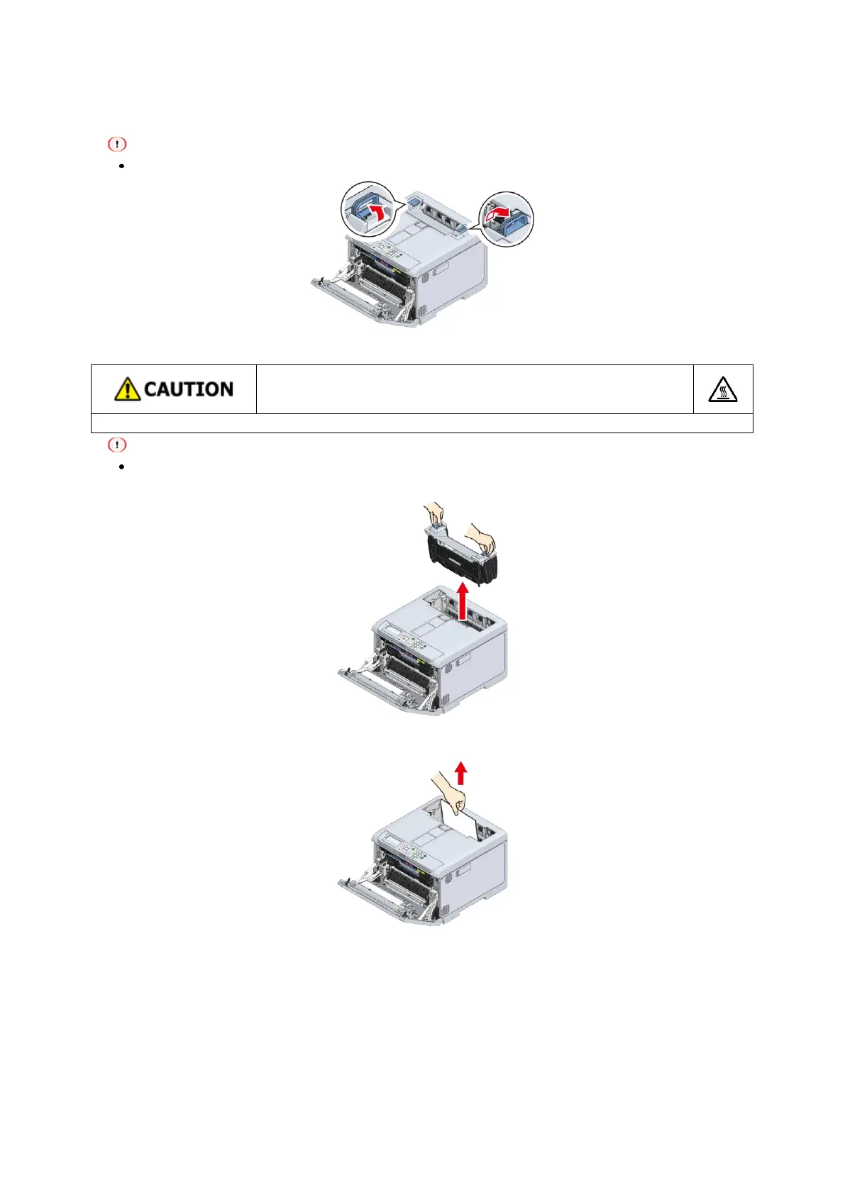 Lift the left and right handles of the fuser unit at the back of the output tray until a click is heard,