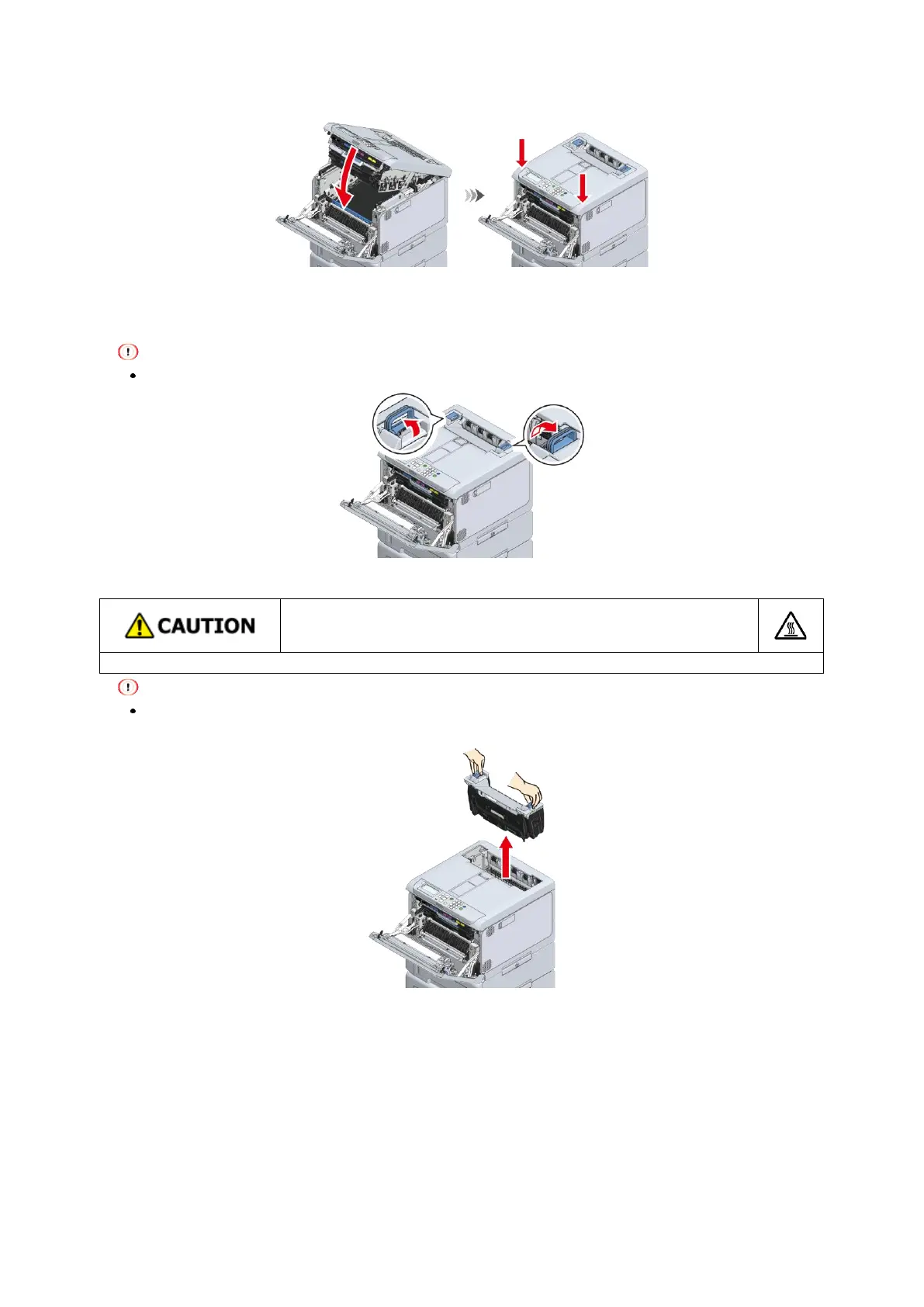 Holding both the left and right handles of the fuser unit, remove the fuser unit from this machine.