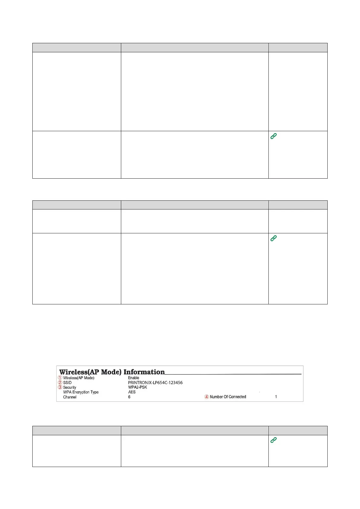 numbered ① to ④ in the following figure in Wireless (AP Mode) Information.