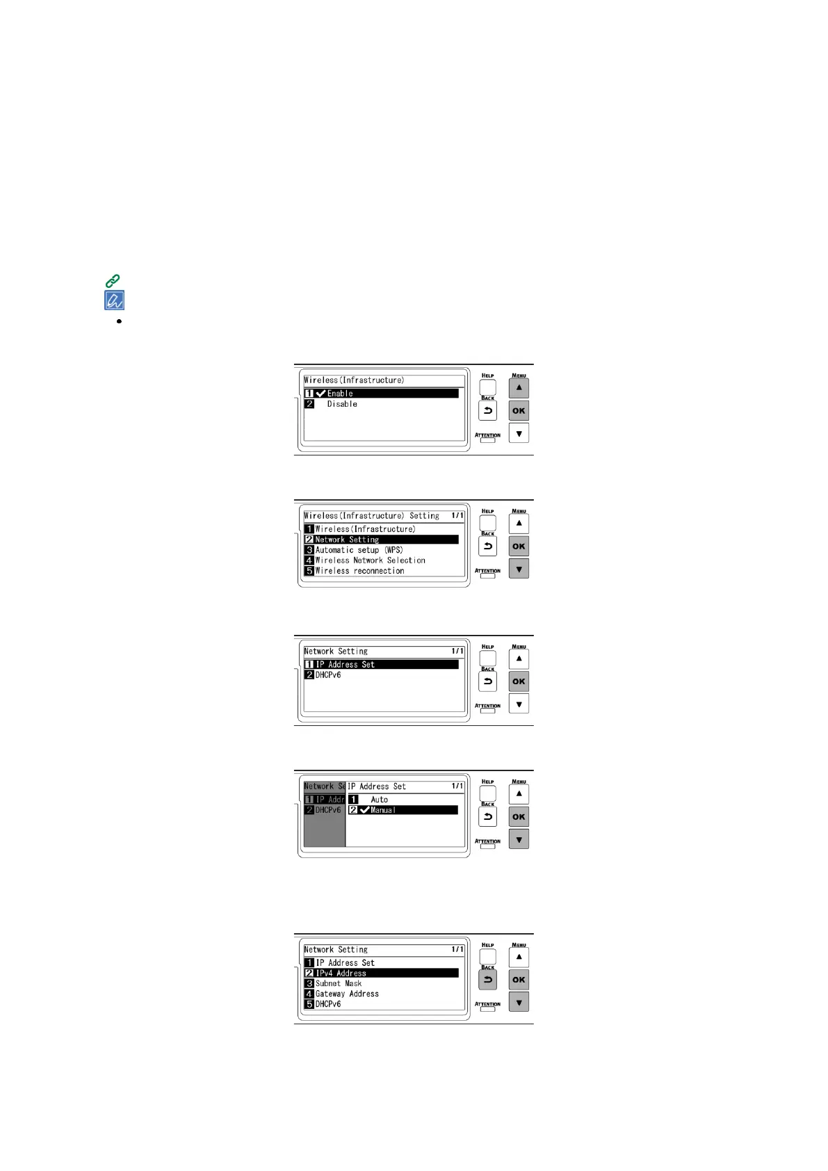 Press «BACK», then press ▼ to select [IPv4 Address] on the [Network Setting] screen, and