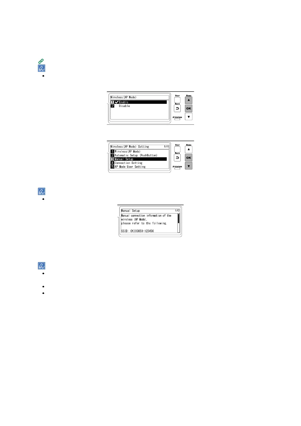 Press the scroll button ▼ on the operator panel several times to select [Wireless(AP Mode)