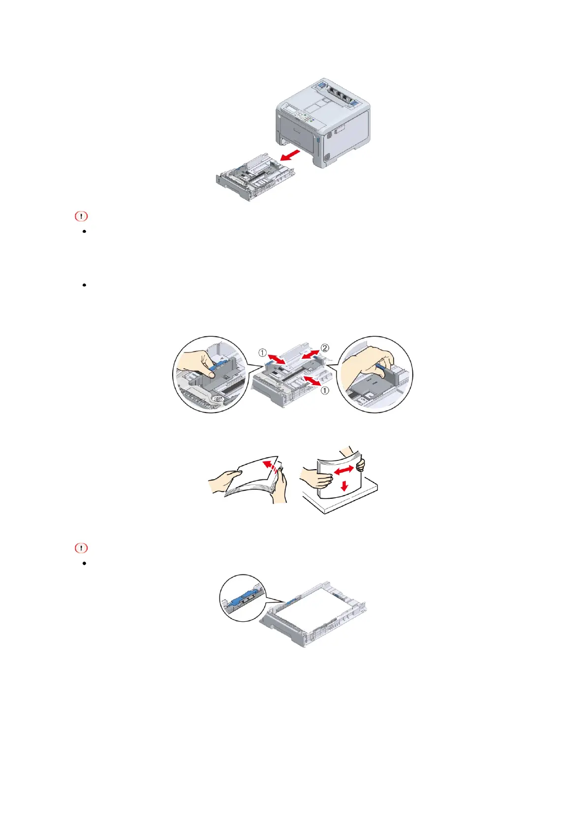 Slide the paper guide and the blue part of the paper stopper to fit the size of the paper to be