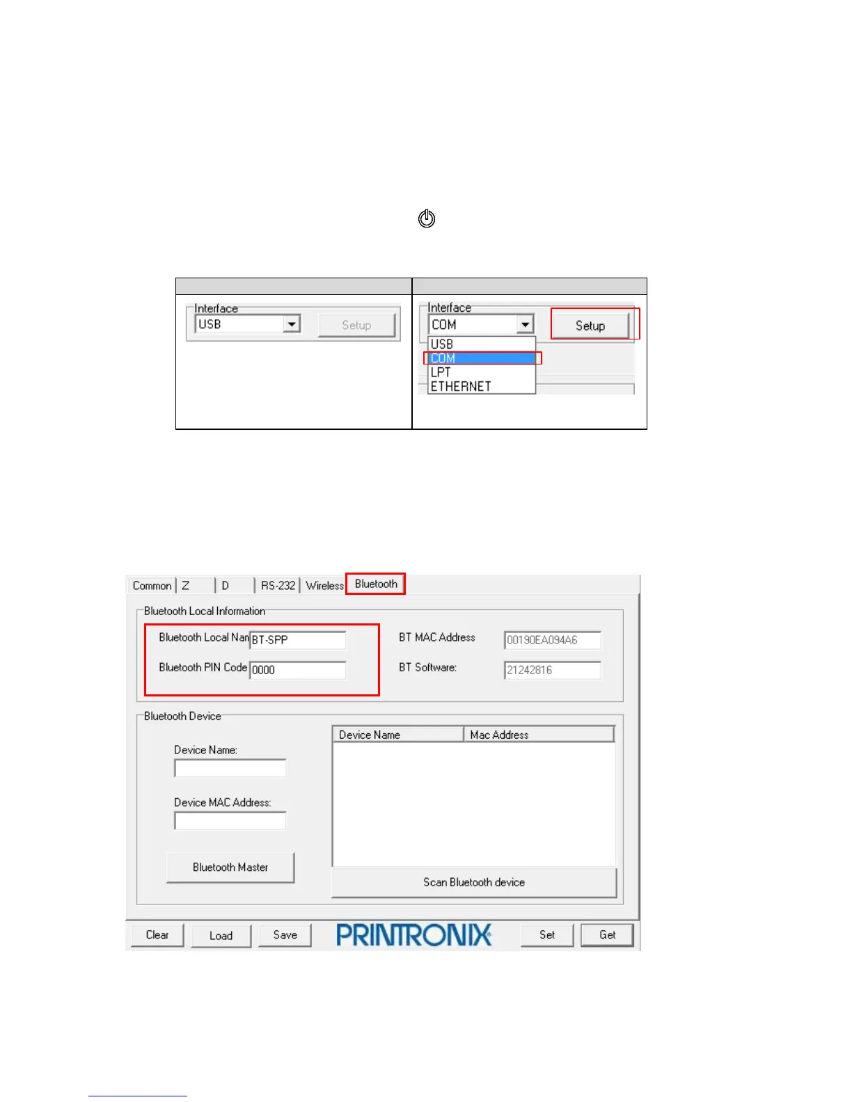 Press “Set” button to set the new BT name or BT PIN code of the printer.