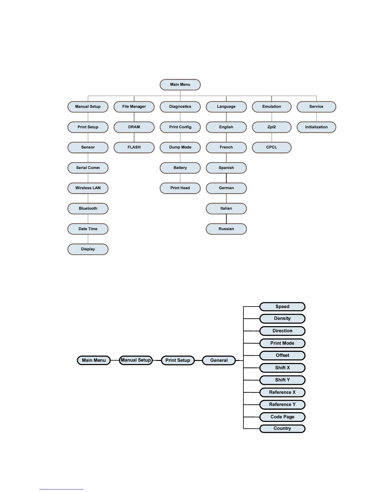 Printronix M4L - Printer Settings via LCD Menu; Main Menu Categories and Print Setup