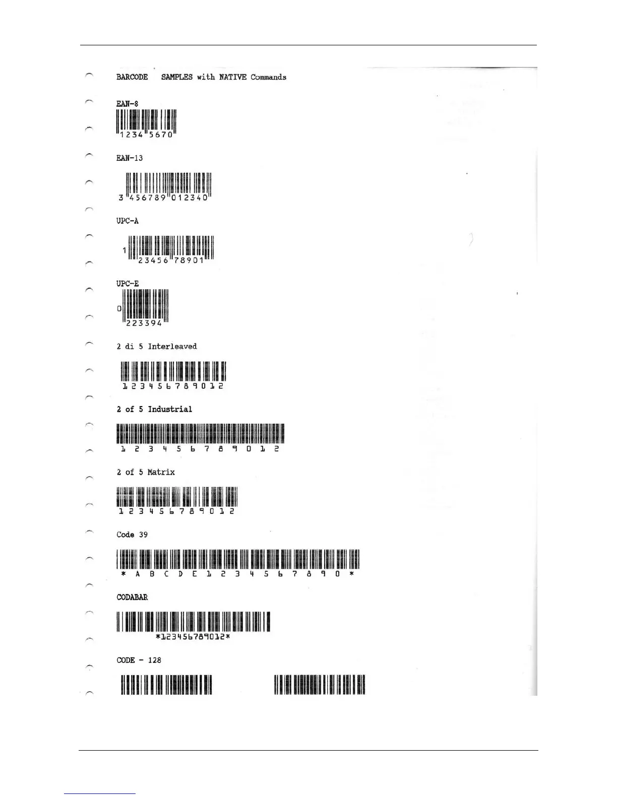 Printronix S828 - Figure 154. Bar Code Examples with NATIVE Commands Example (Bar Code Mode Native)