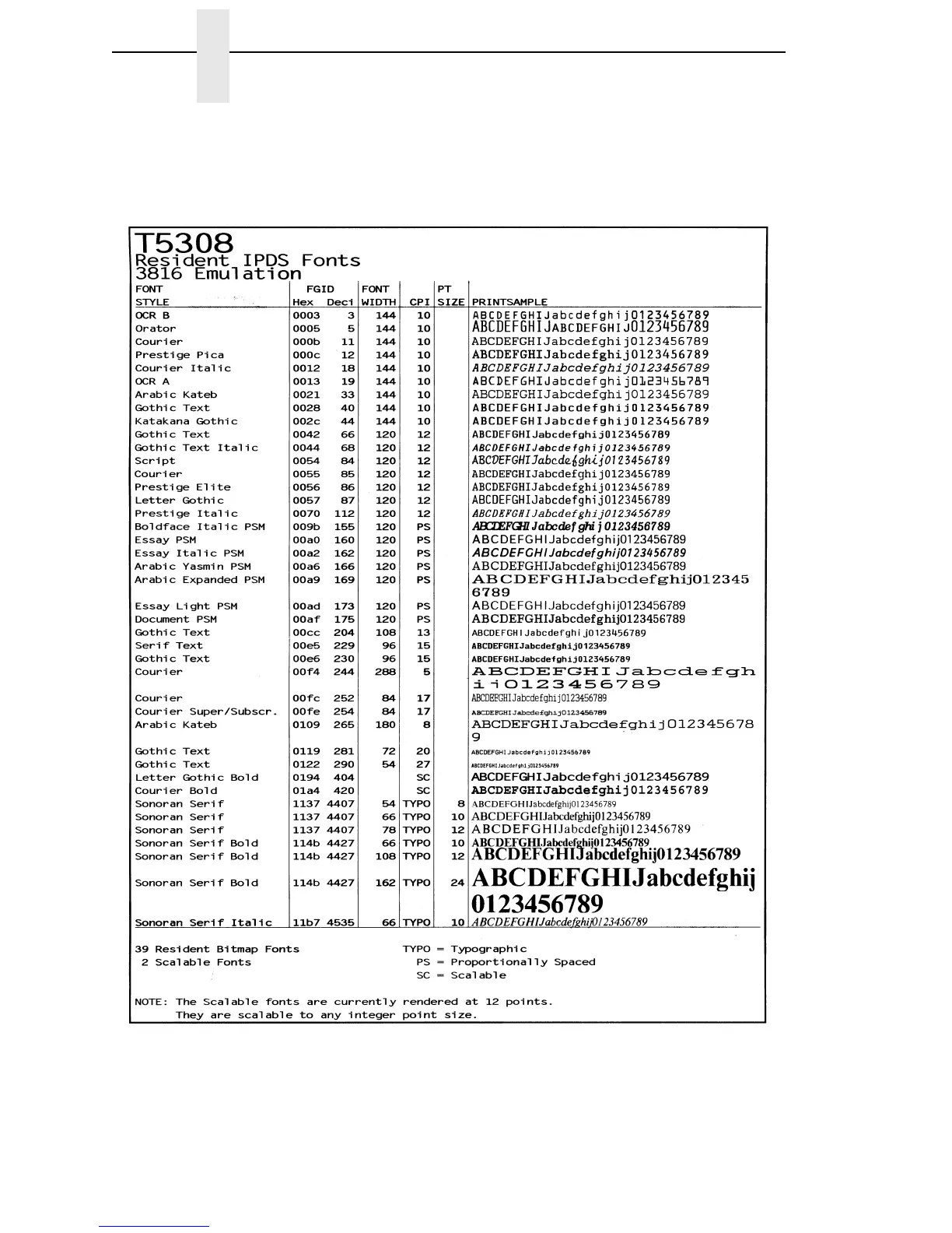 Figure 4. IPDS Fonts - 3816 Emulation Sample Printout