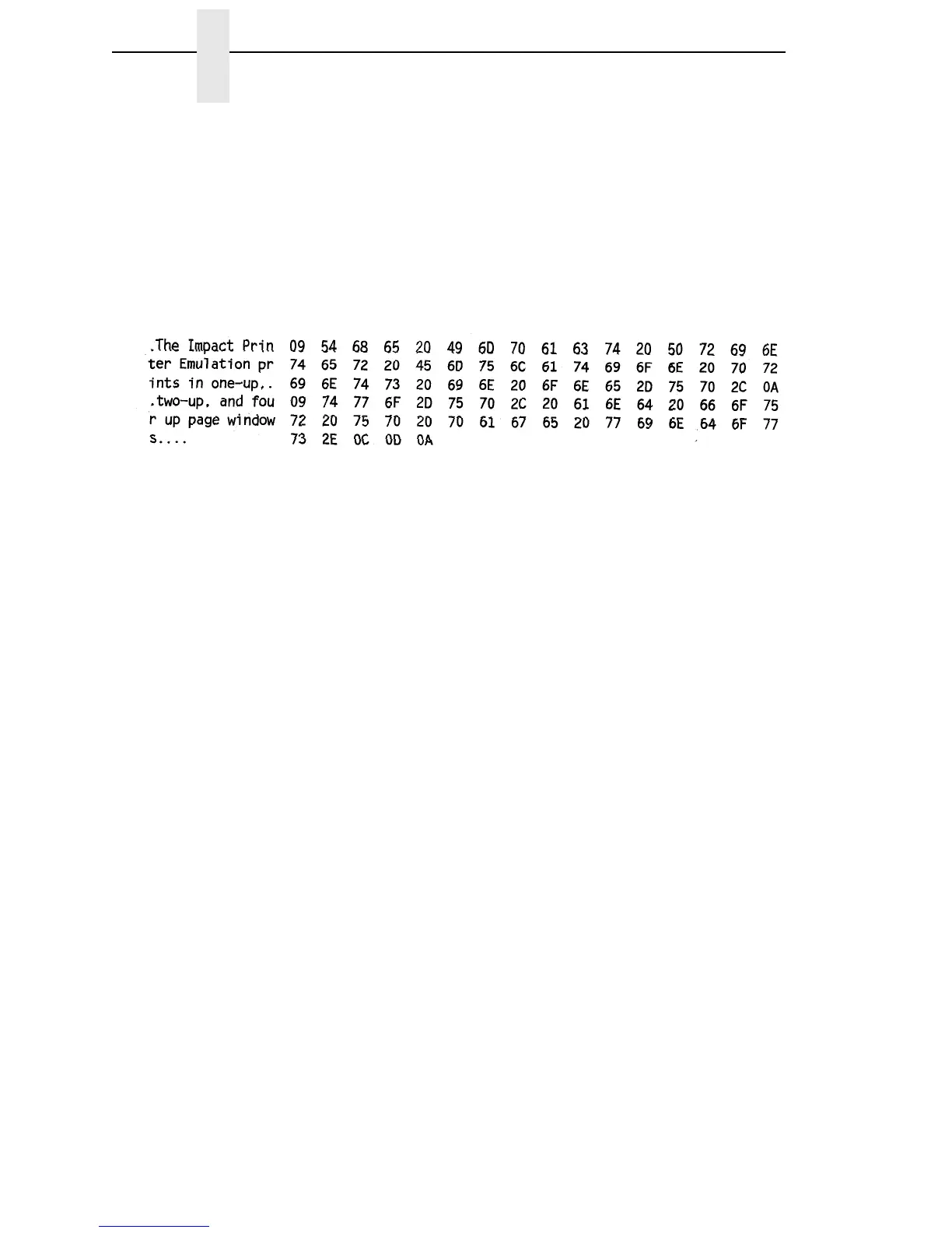 To begin a hex dump, first place the printer offline and enable the Hex Dump