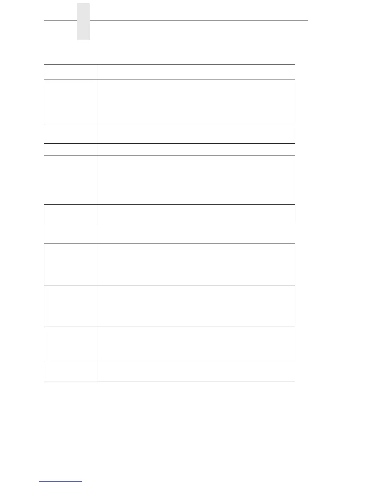 Table 1: Key Function Summary - Secondary Control Panel