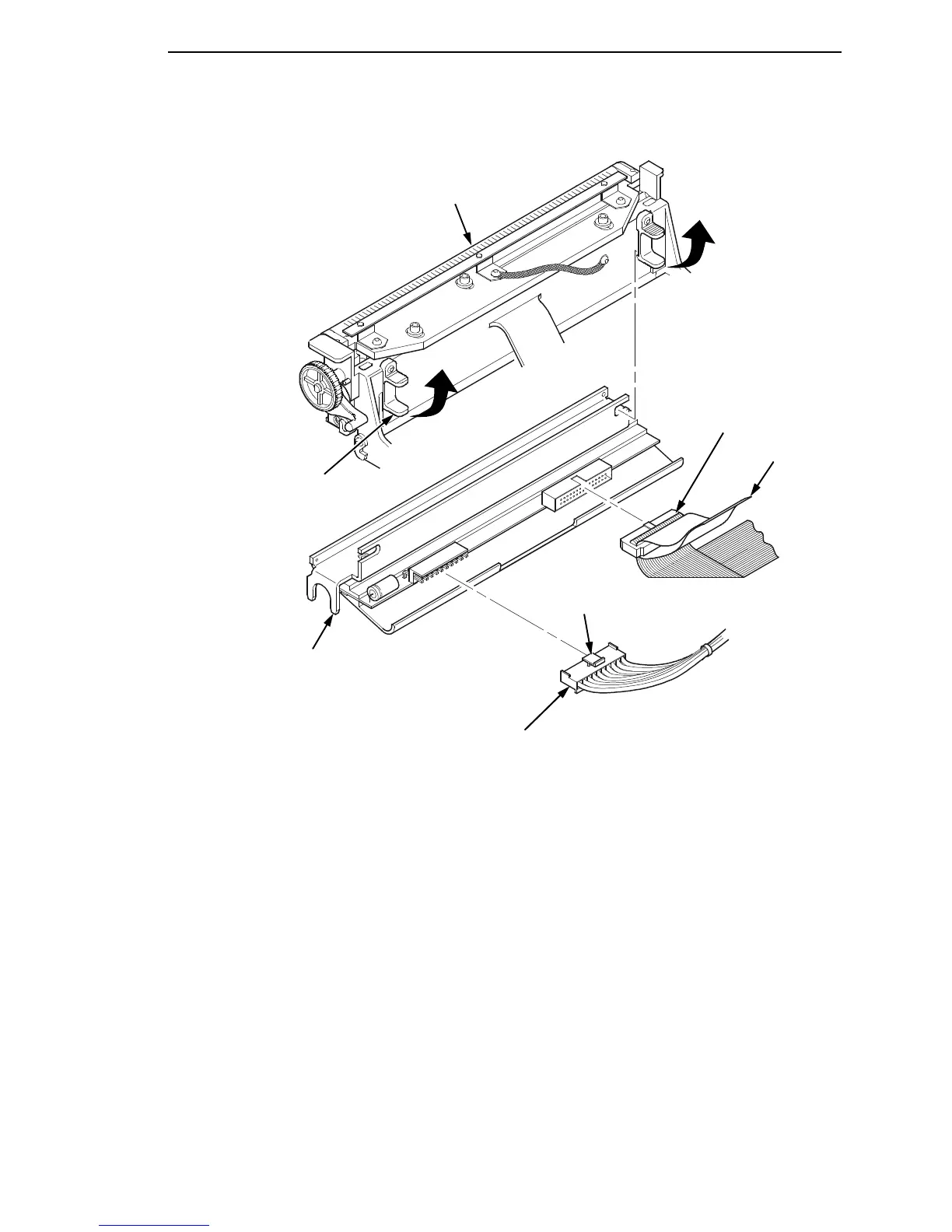 6. Use the pull-tab to disconnect the printhead/controller cable from the