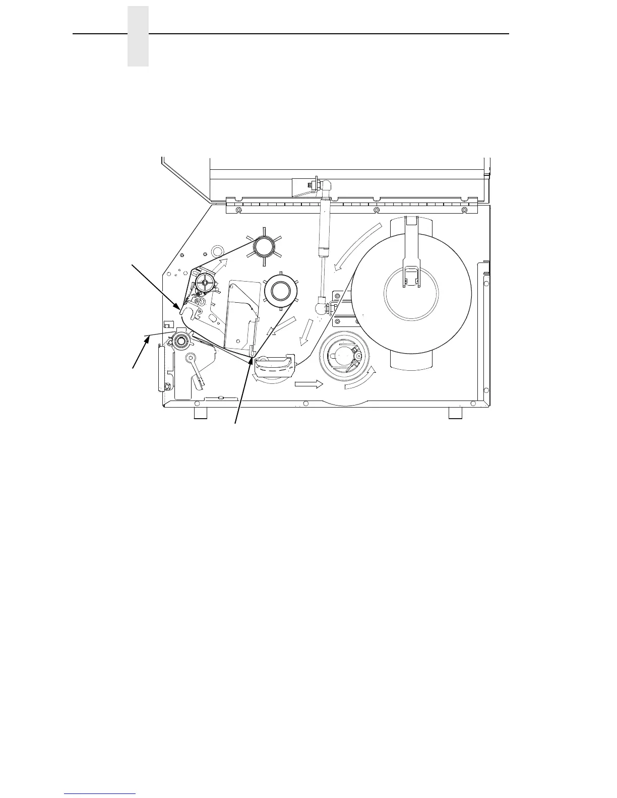4. Thread the end of the ribbon under the rear ribbon guide roller, then