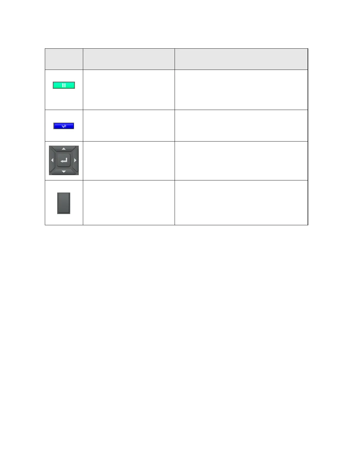 green highlighted icon is the current selection. Pressing the PAUSE key toggles the printer from
