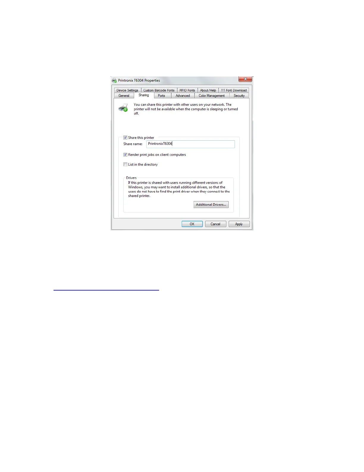 Figure 10 Setting Printer Properties Sharing Options