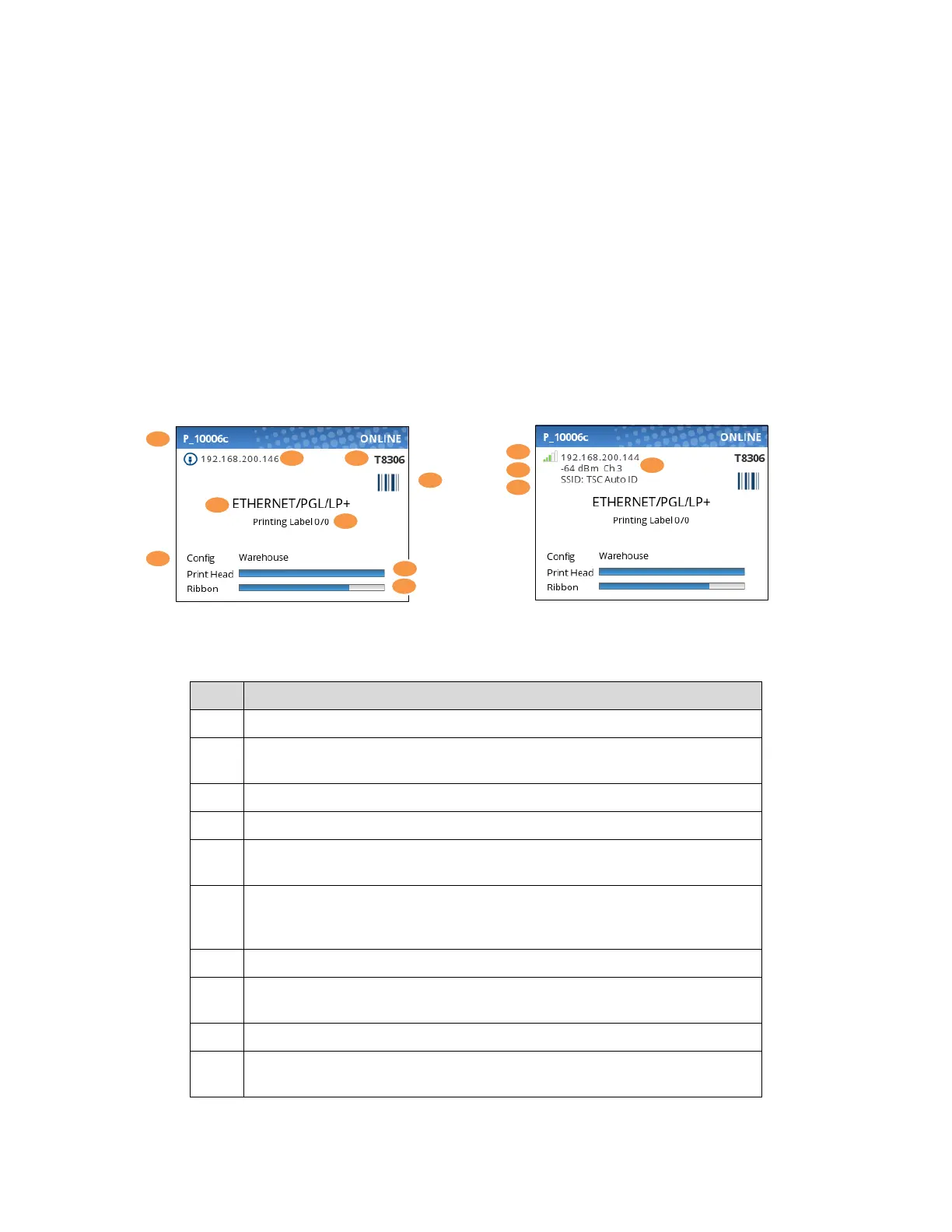 in the table below. Notice there are differences for the wired Ethernet and wireless ONLINE screens.