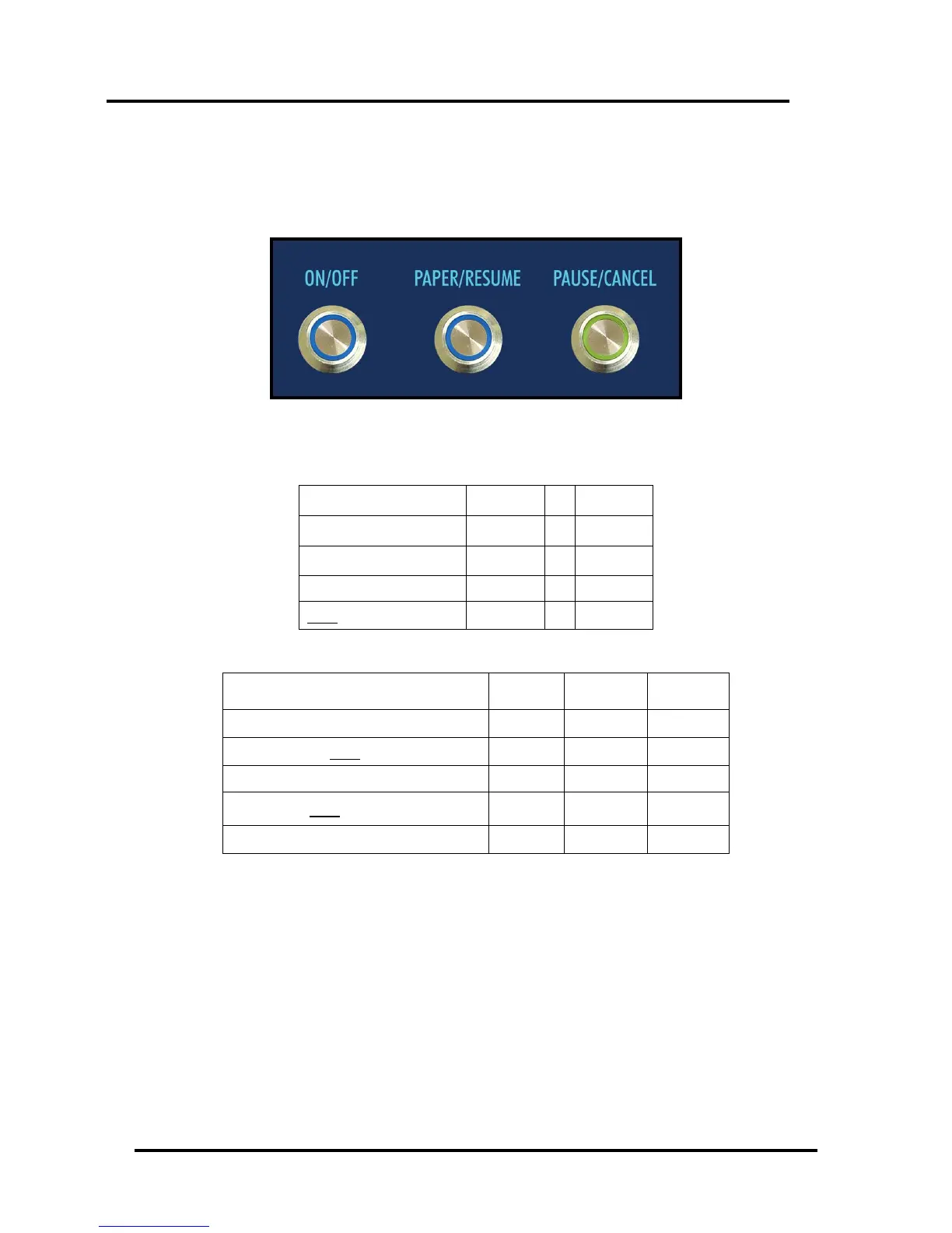 The lights on the three buttons, shown below, indicate the status of the printer.
