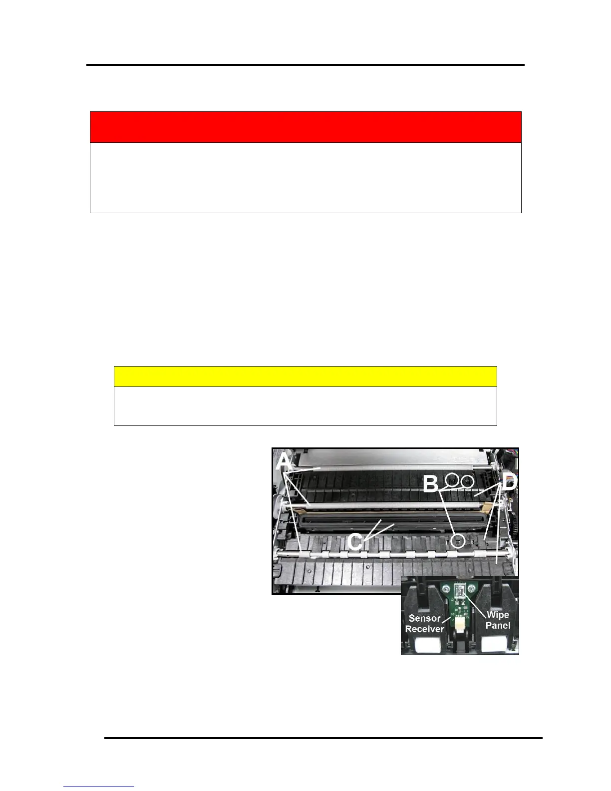 splash onto other parts of the printer. Take care not to damage the PC Boards or electrical wiring.