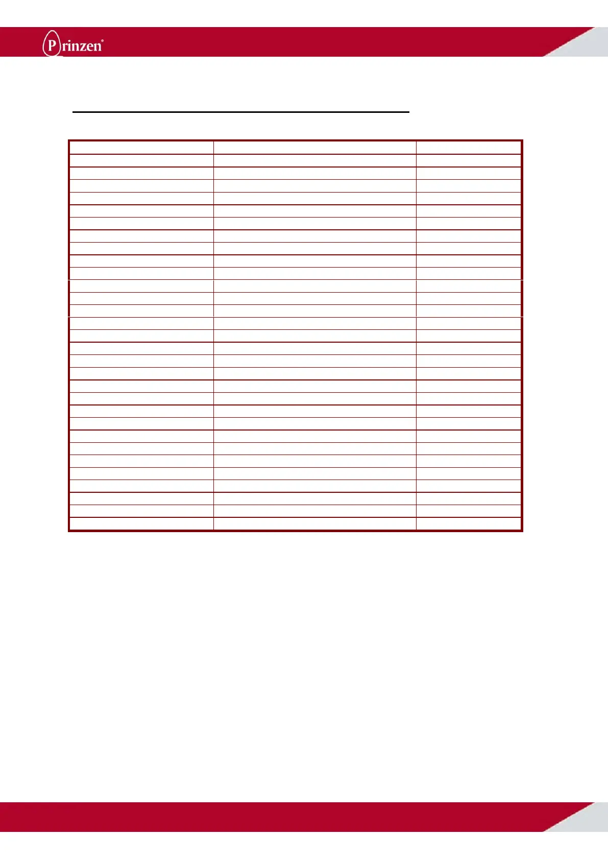 Prinzen PSPC Series - RECOMMENDED SPARE PARTS LIST (PSPC)