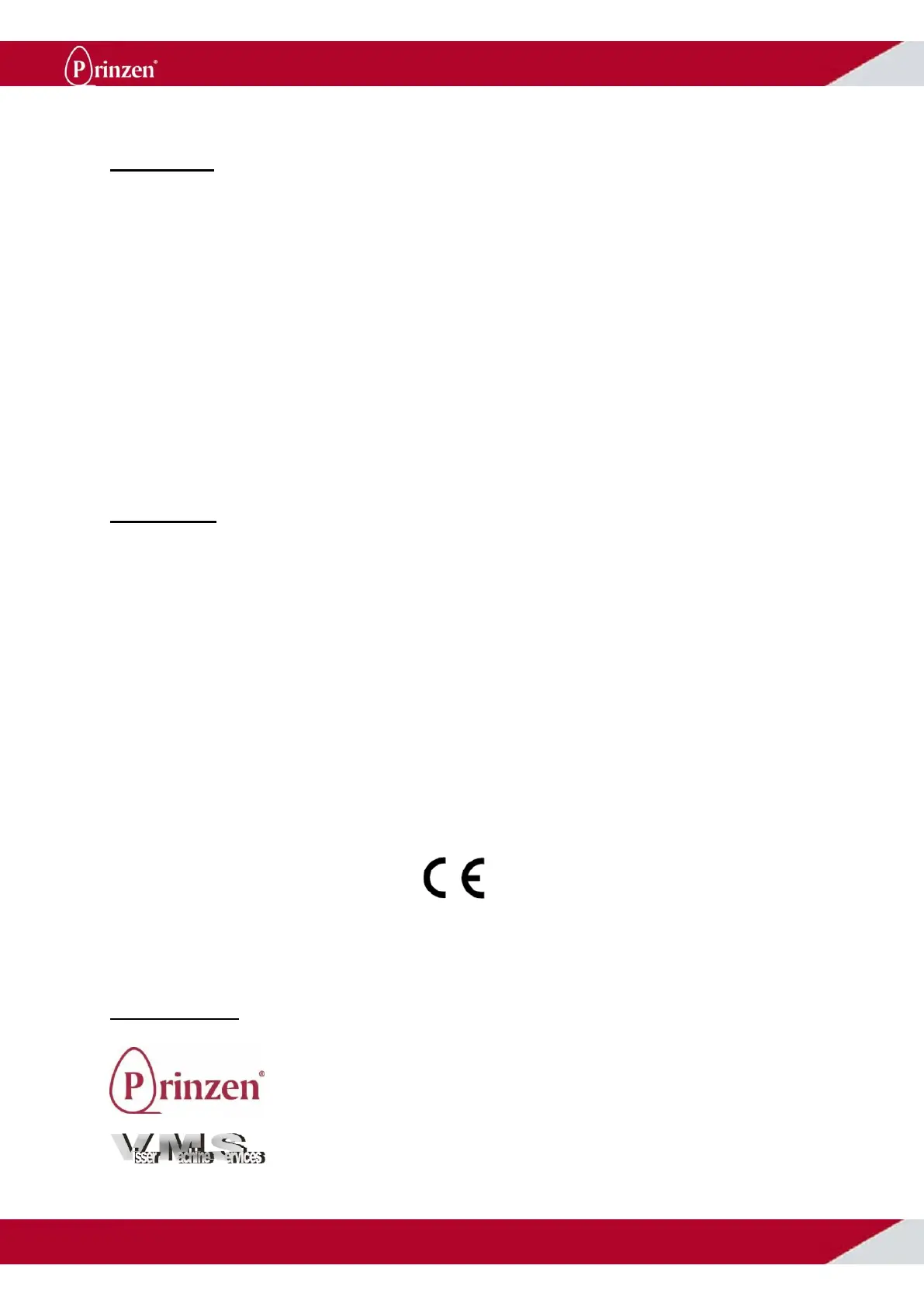 Though this manual has been put together with the utmost care, Prinzen BV cannot accept any
