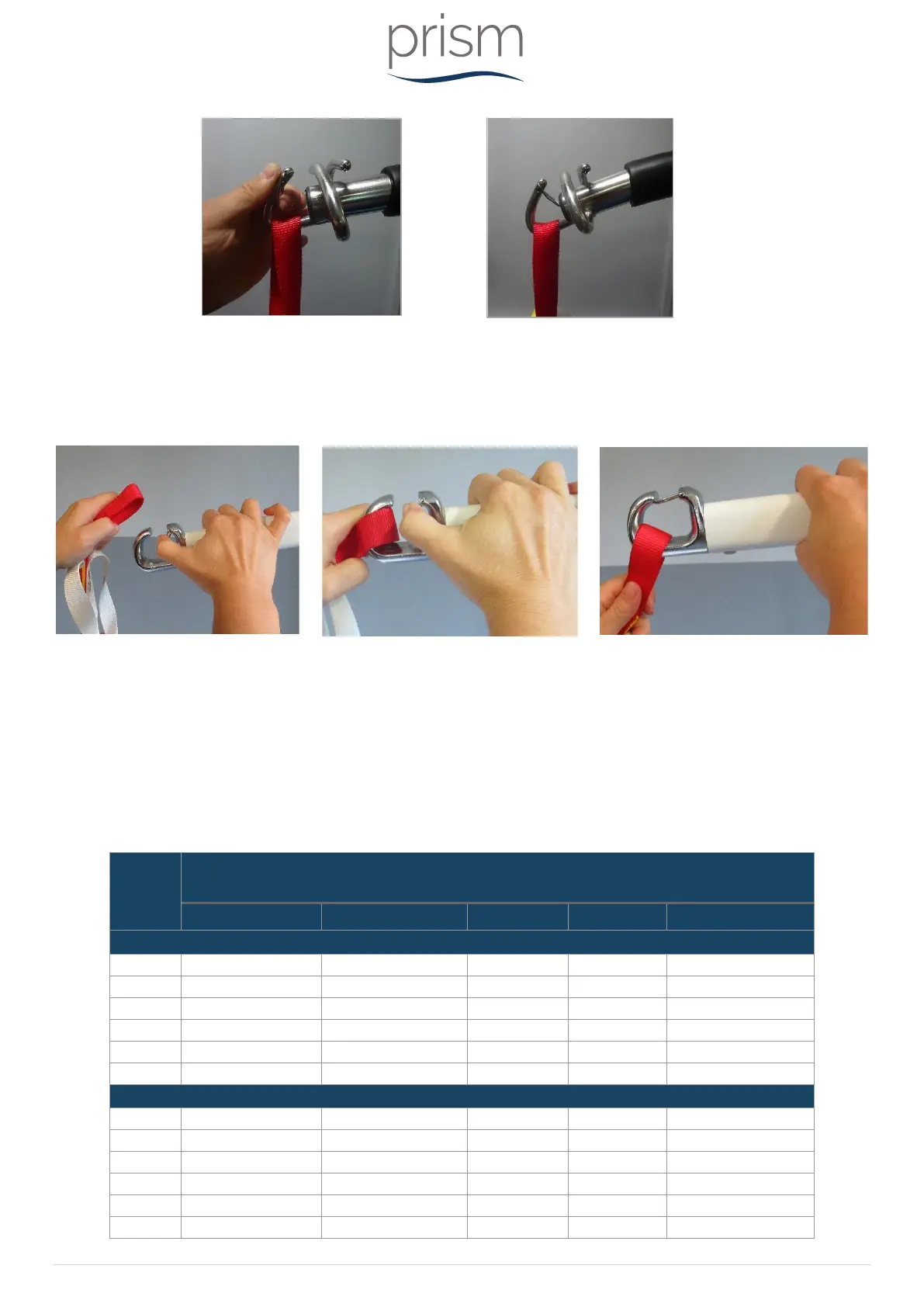 The Mackworth slings with a safe working load of 200kg or more that can be used with the CP Hoist are shown below in Table 5,
