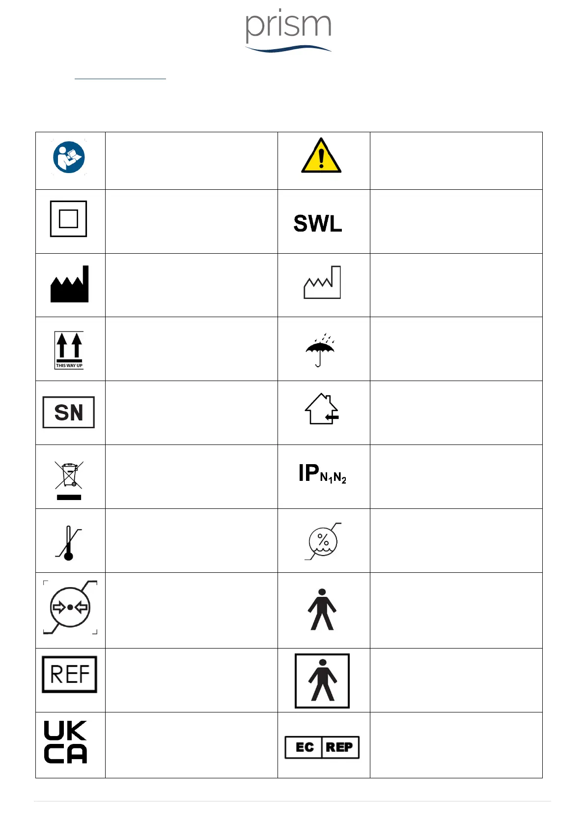 The table below includes all symbols from BS EN ISO 15223-1:2016 that can be found in this manual and on the product and