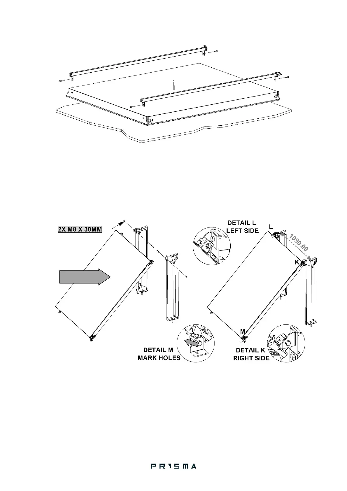 Mark on the roof the position of the holes at the feet of the diagonals.