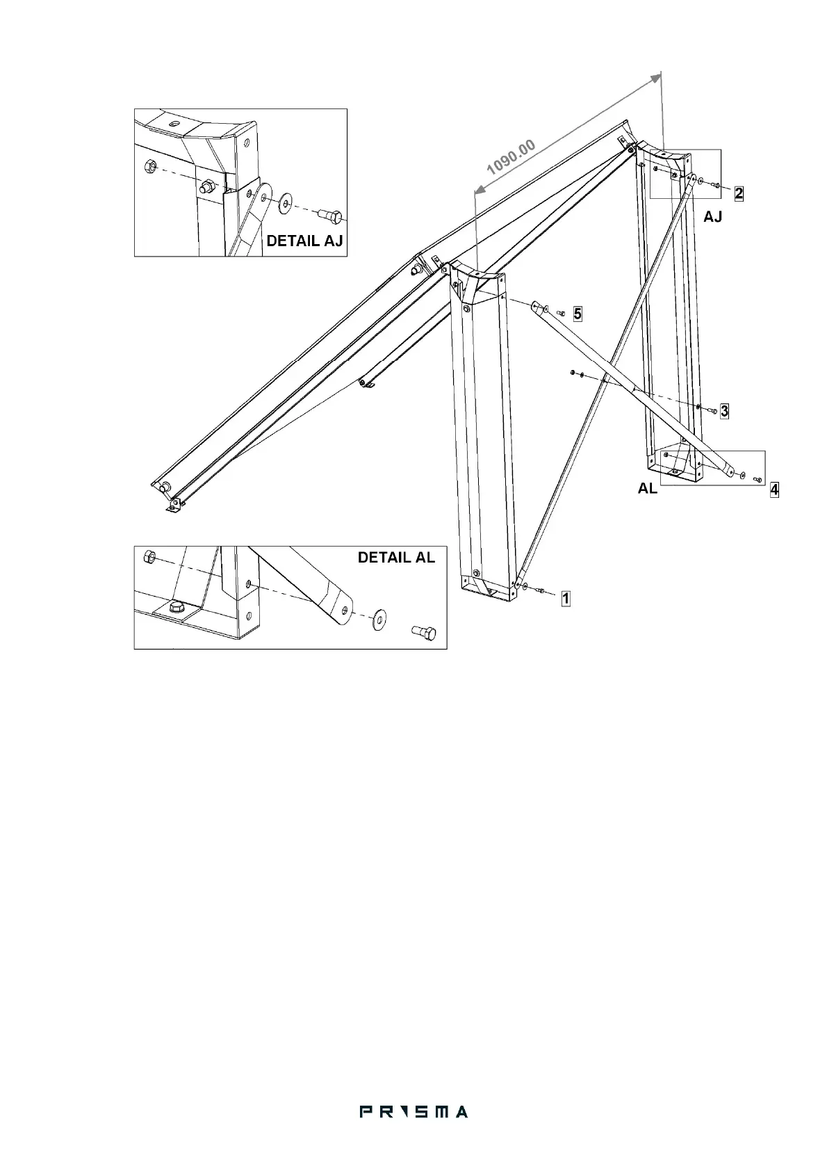 Ensure both pillars are vertical and tighten bolts 1-5 in the sequence 1-2-4-5-3.
