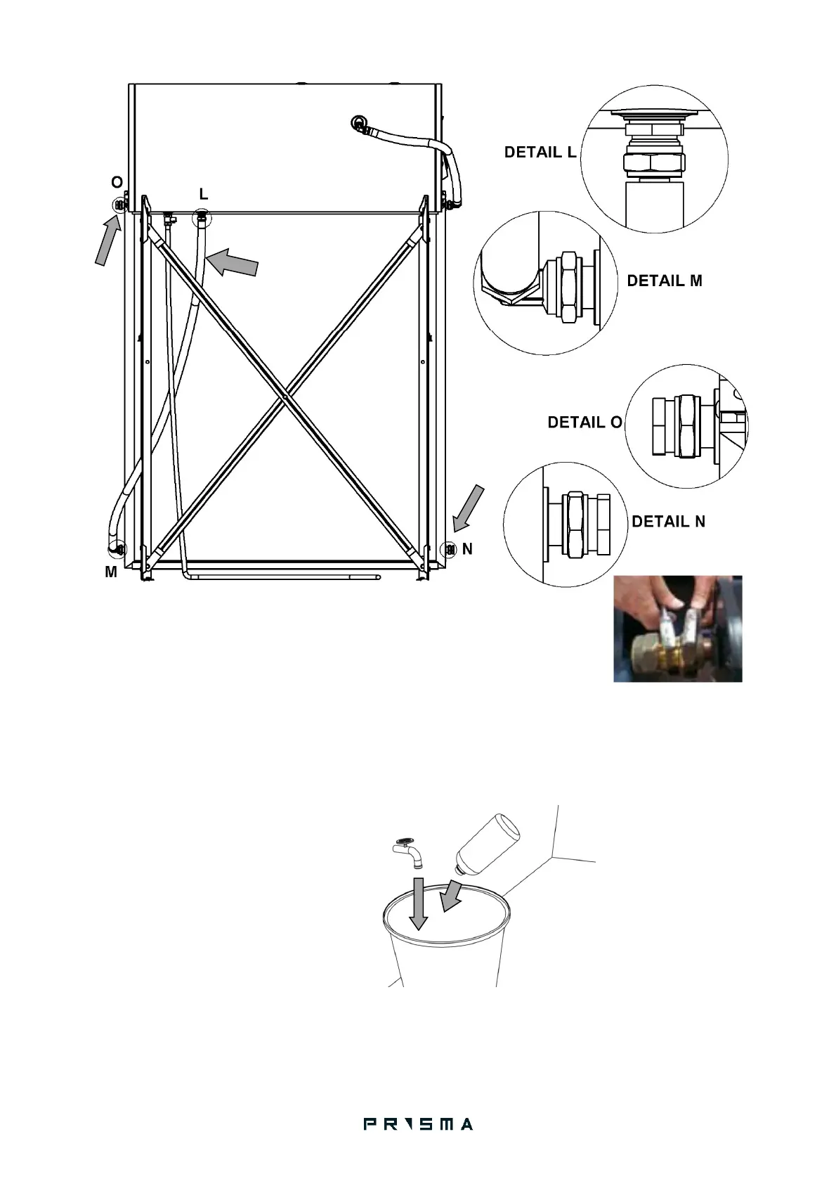 follows an upwards route towards the tank. ATTENTION: When tightening the fittings on the collector