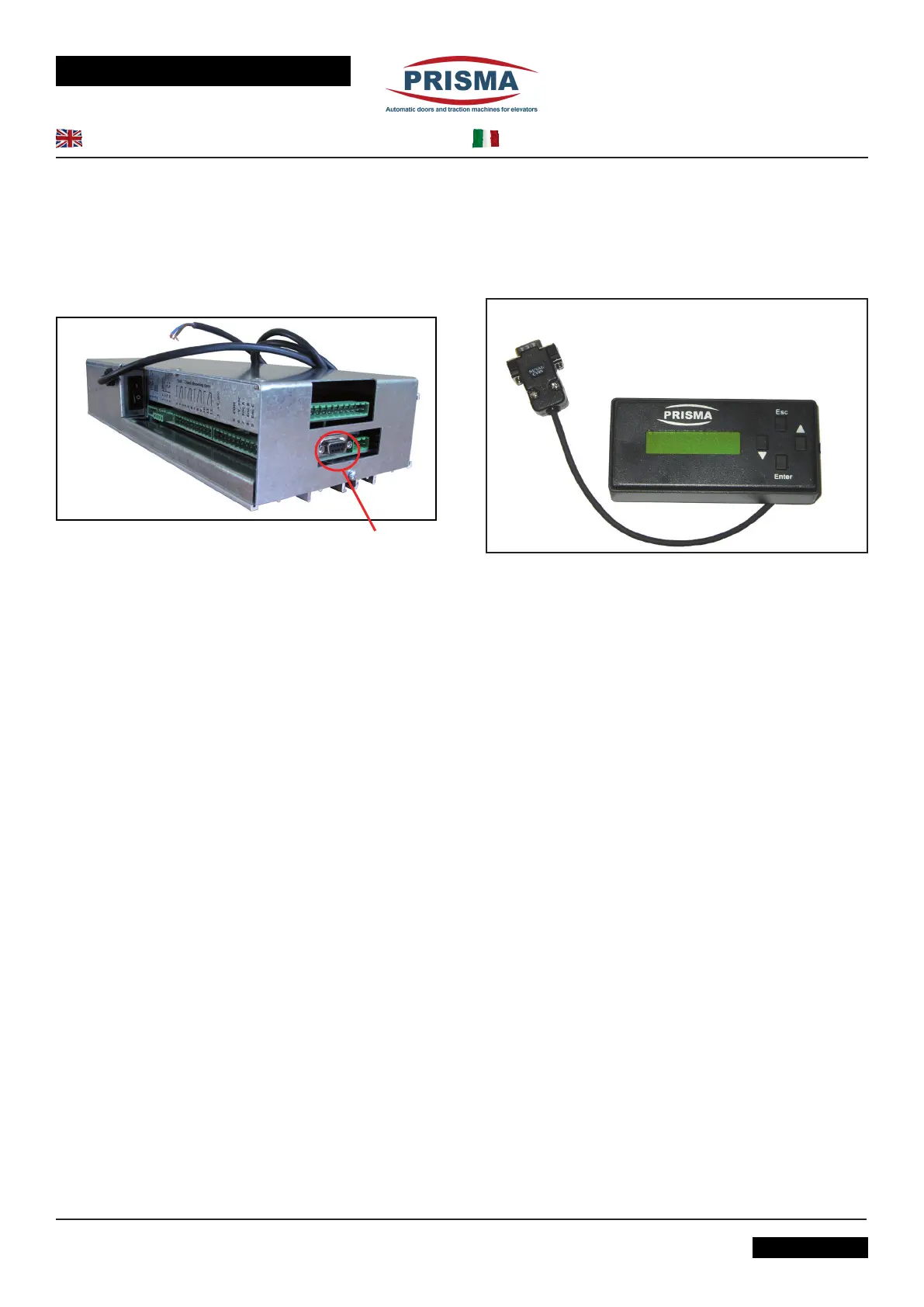 with 4 buttons (▼, ▲, Enter, Esc) and an alphanumerical display