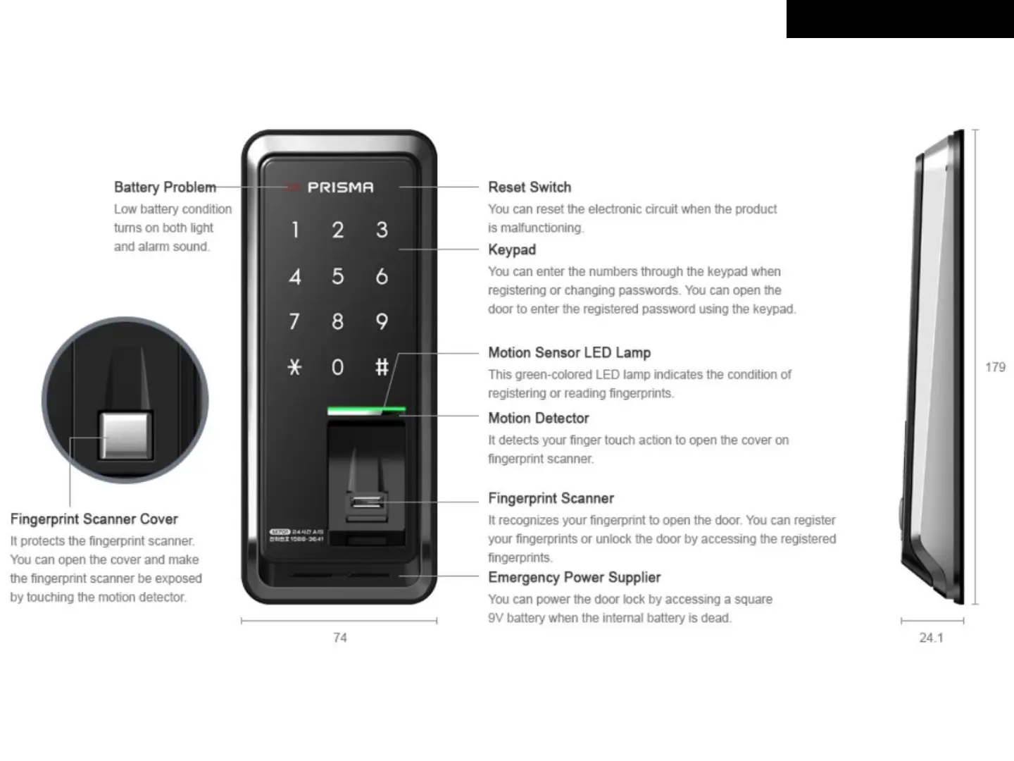 Prisma M701 - Specification; Battery Problem; Fingerprint Scanner; Emergency Power Supplier